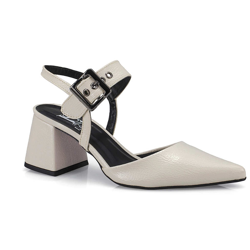 Scarpin Feminino Bico Fino Salto Bloco Confortável com Fivela Sapato Social 18400