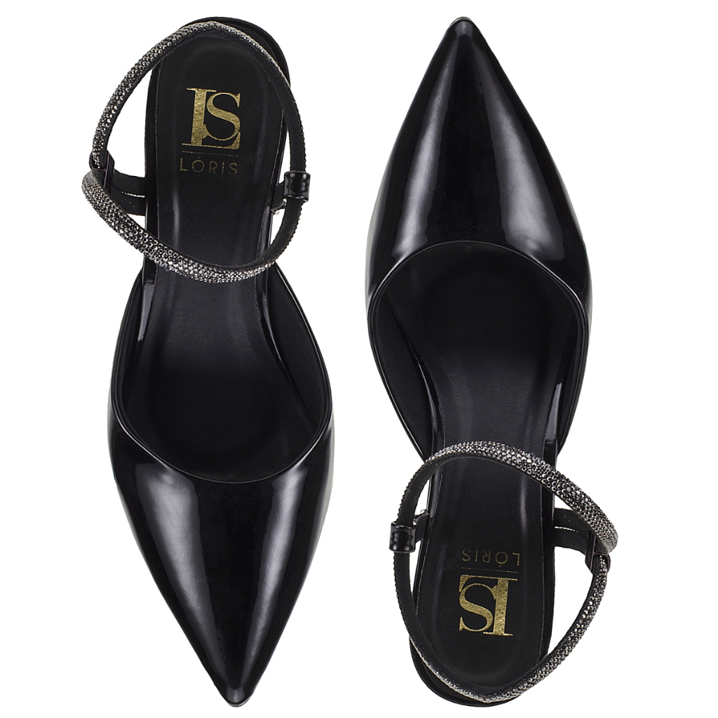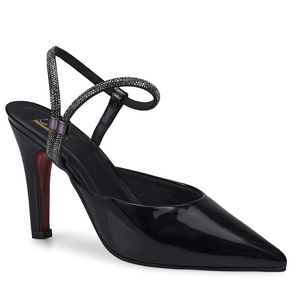 Sapato Feminino Scarpin Salto Alto Traseiro Aberto com Brilho Confortavel 4001