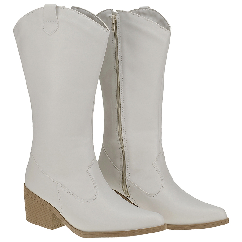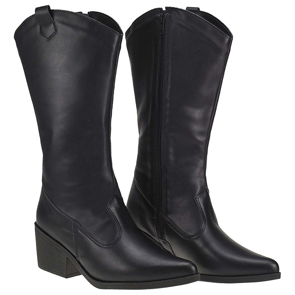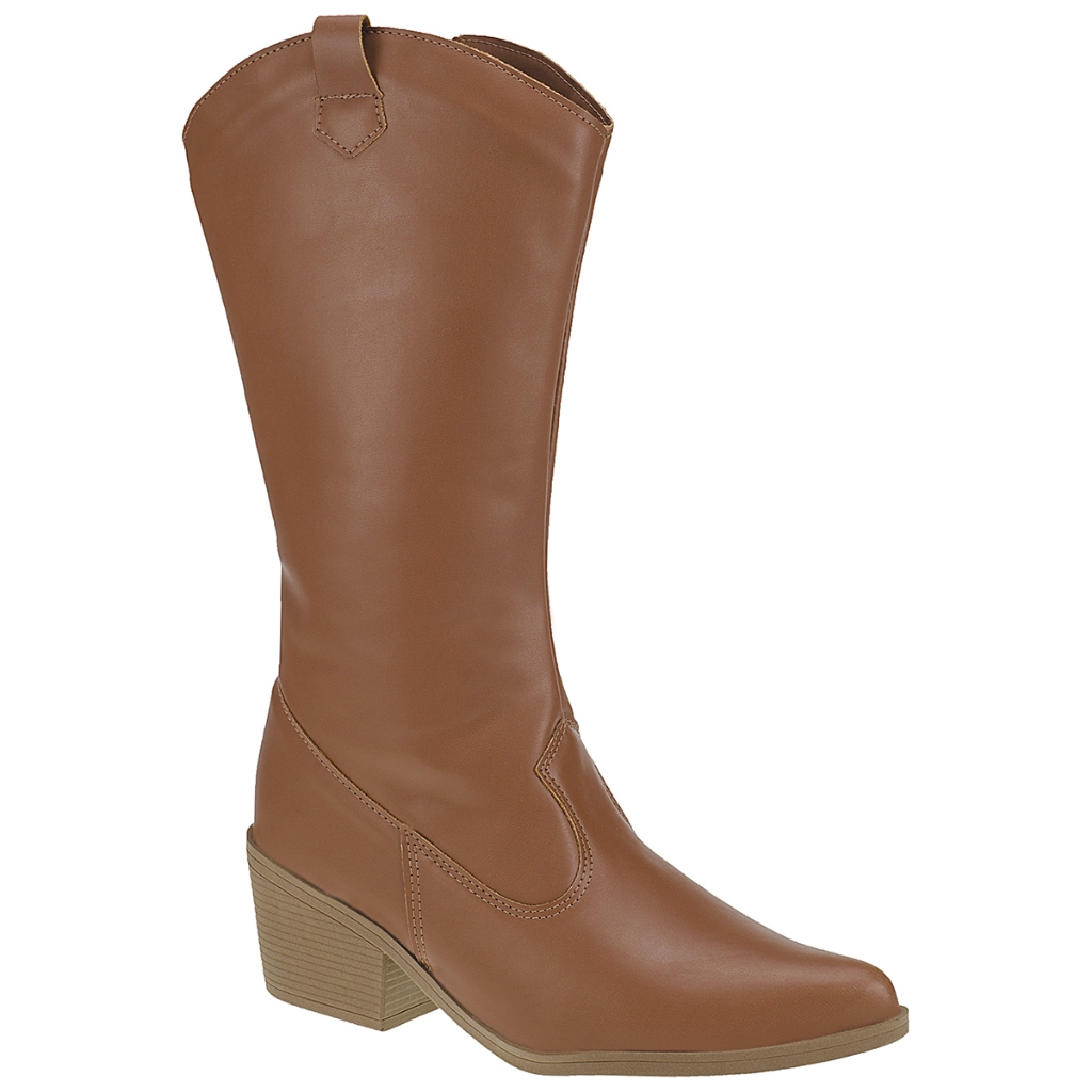 Bota Feminina Texana Cano Longo Moda Country Rodeio Bico Fino com Zíper 930-03