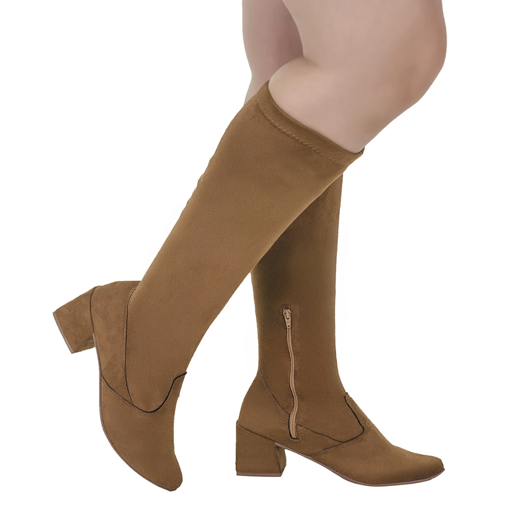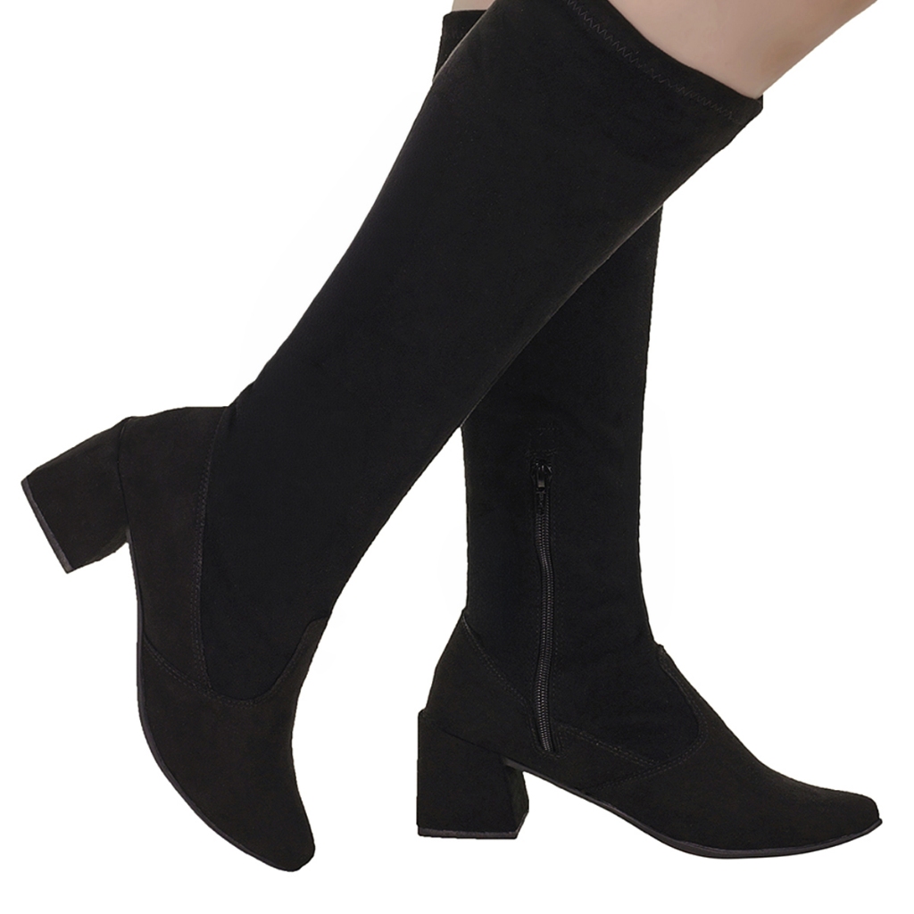 Bota Feminina Cano Longo com Stretch Salto Grosso e Bico Fino Moda Fashion 634