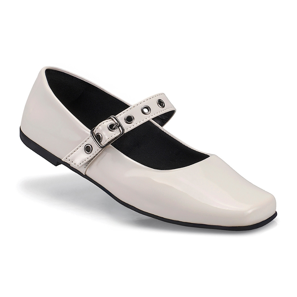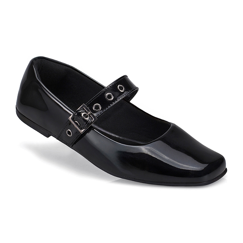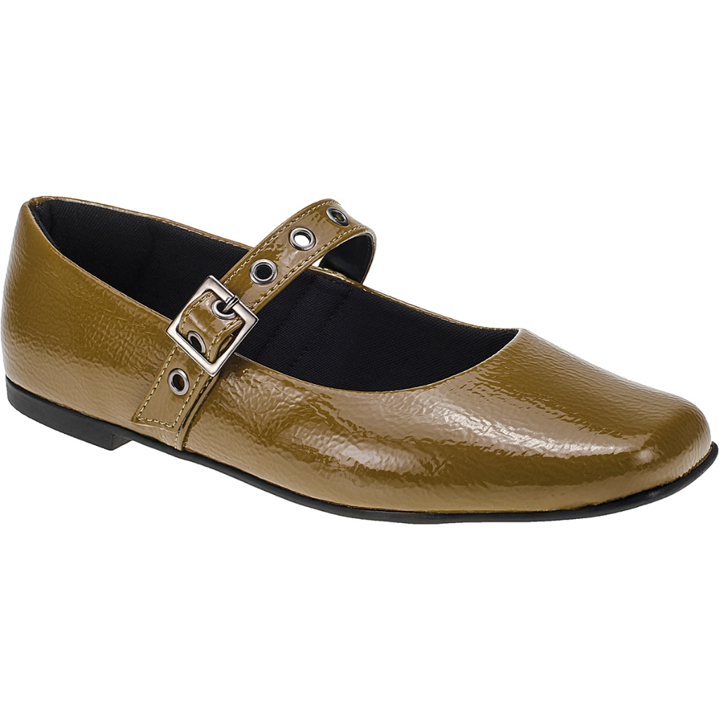 Sapatilha Mary Jane Feminina Fivela Bico Quadrado Clássico Retro 195