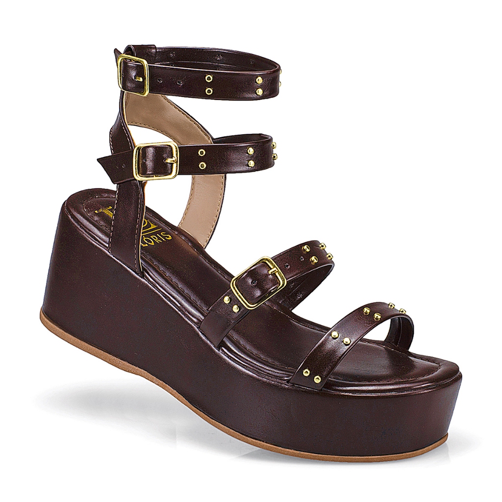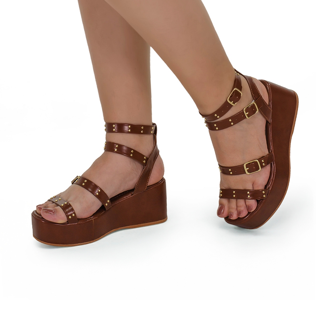 Sandália Feminina Tira Anabela Flatform Fivela Spike Estilosa 440