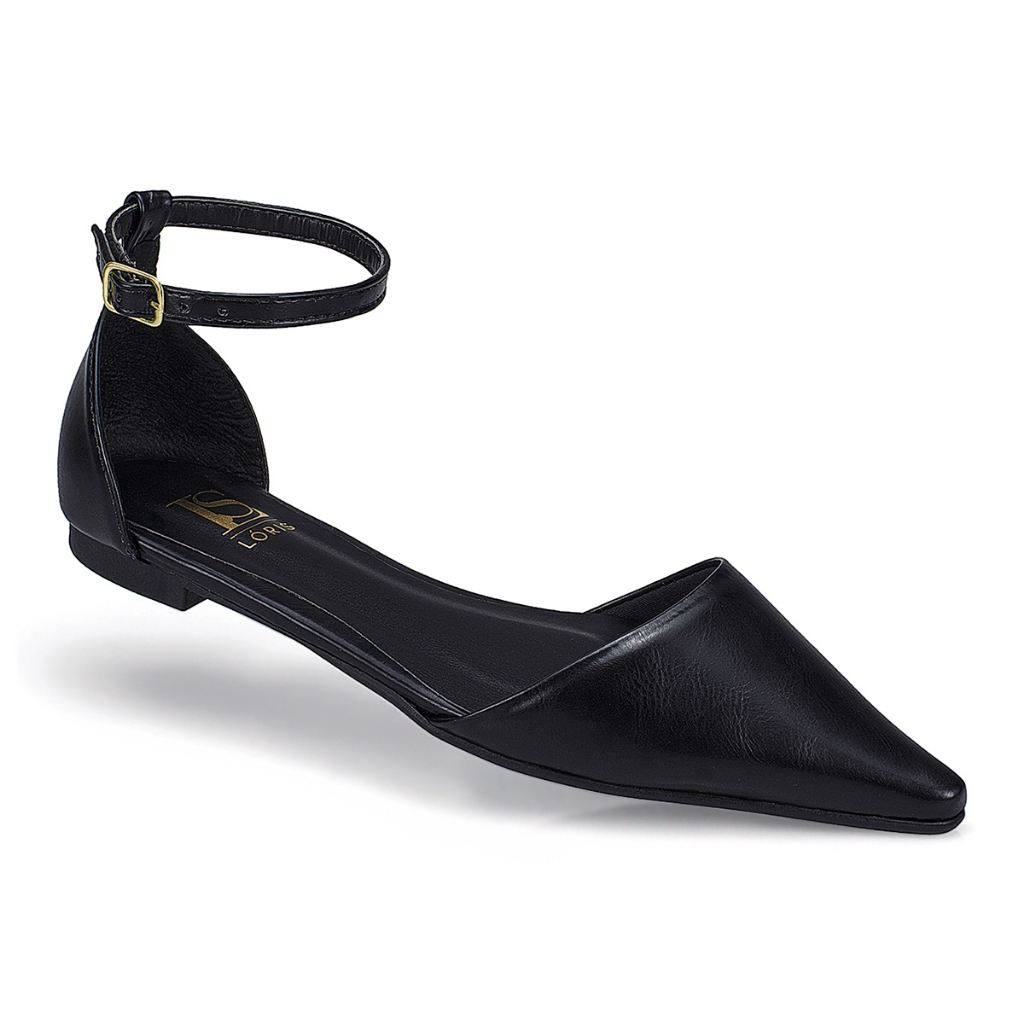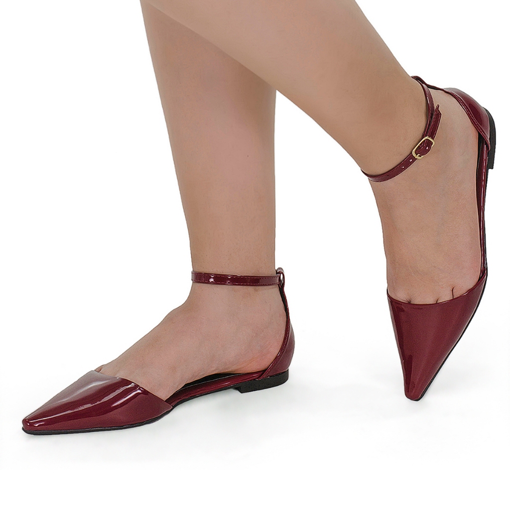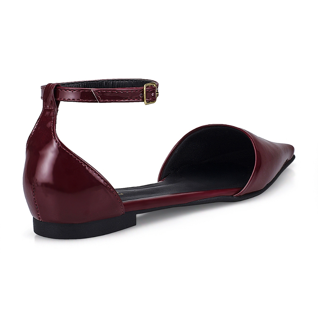 Sapatilha com Fivela Verniz Liso Bico Fino com Traseiro Saltinho Rasteira Confortável Fashion 4132
