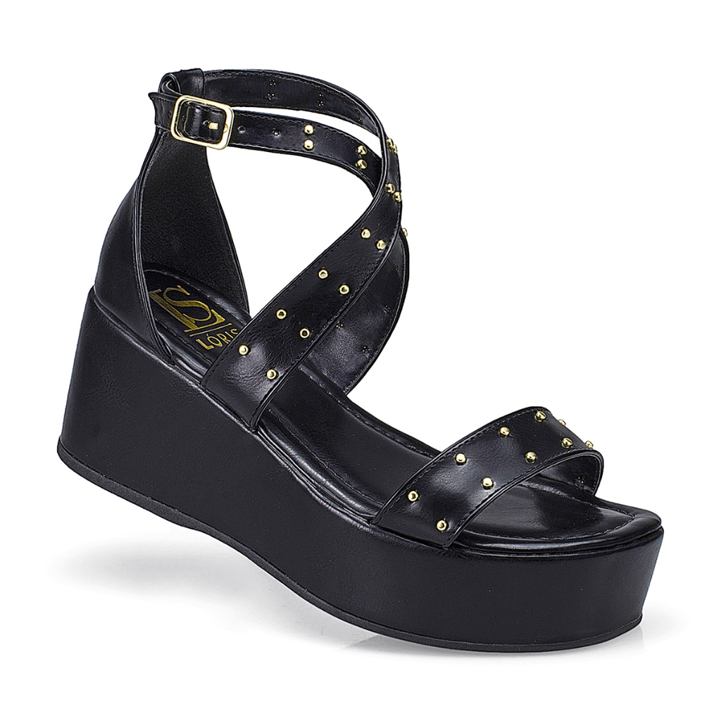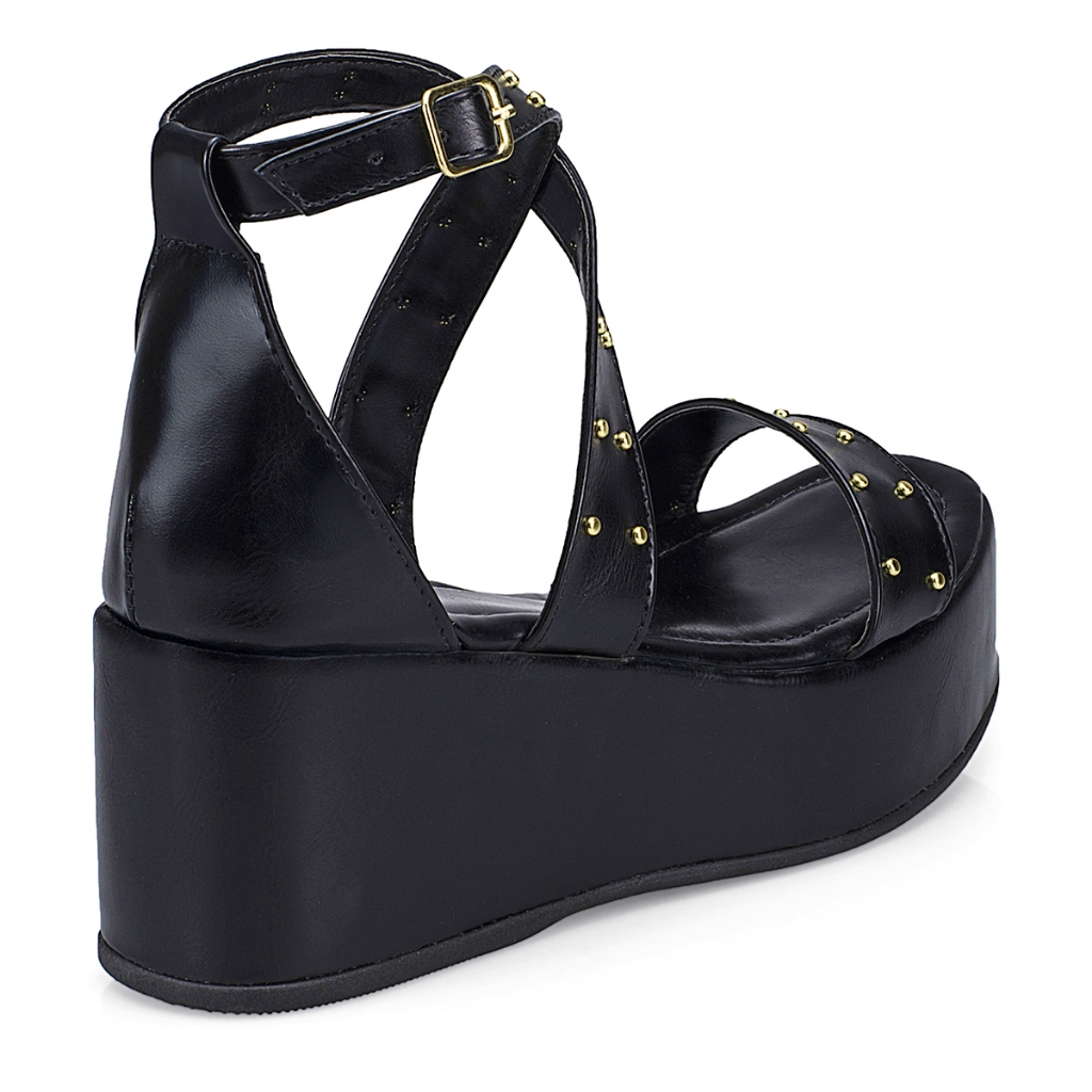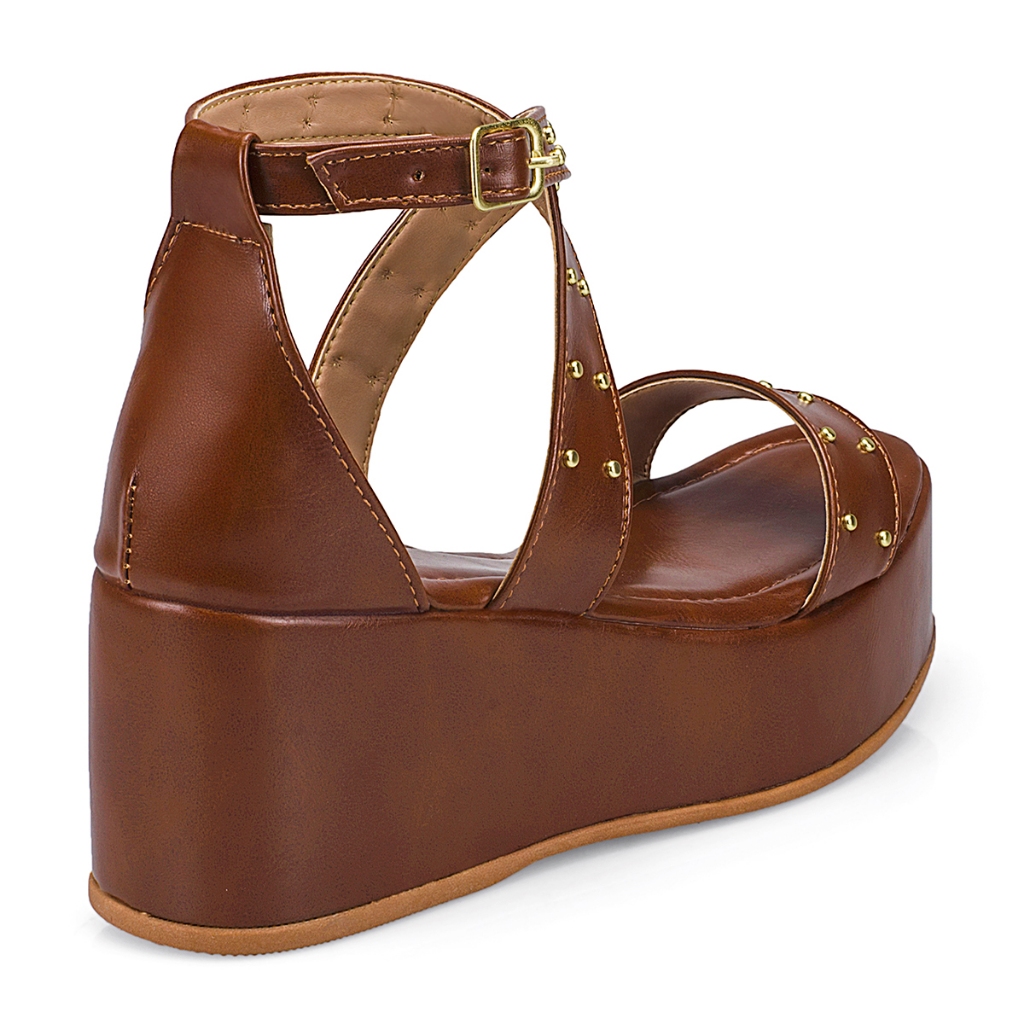 Sandália Feminina Tira Anabela Flatform Fivela Spike Cravo Estilosa 410