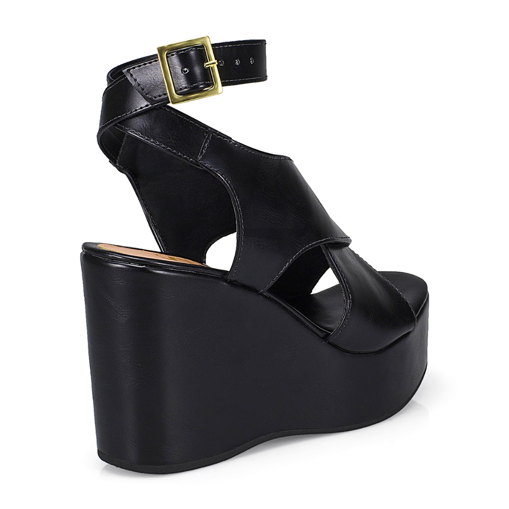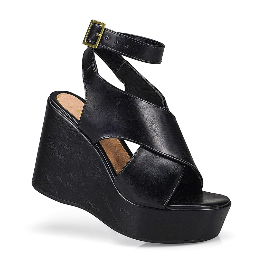Sandalia Feminina Lóris Confortável Salto Anabela Plataforma X Fivela Elegante 20802