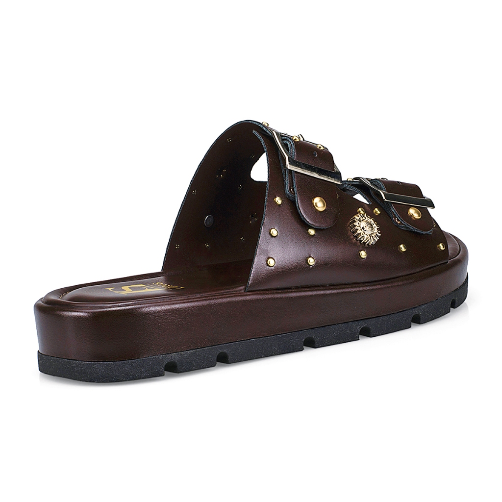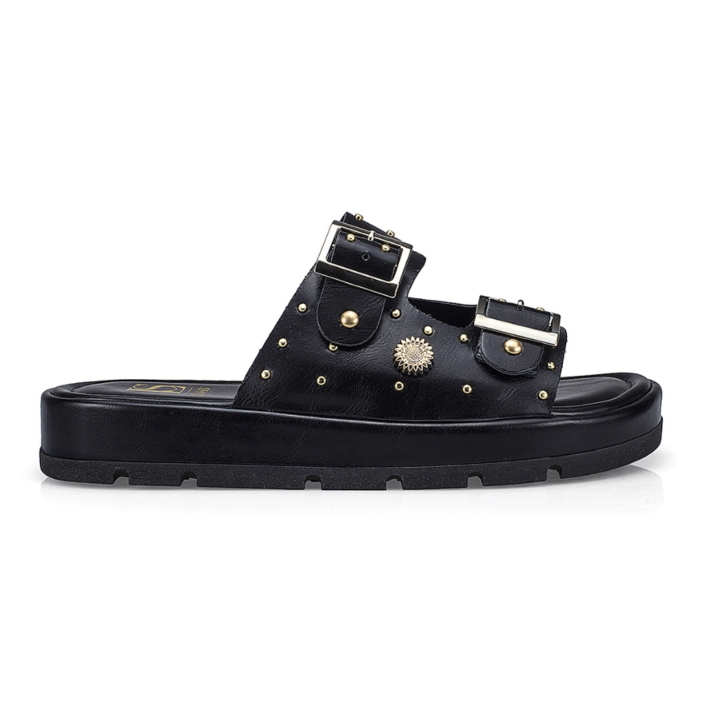 Sandália Rasteira Papete Flatform Spike Ilhós Fivela 052-040