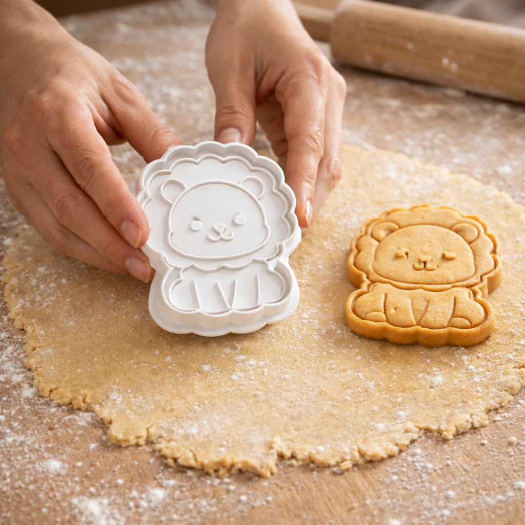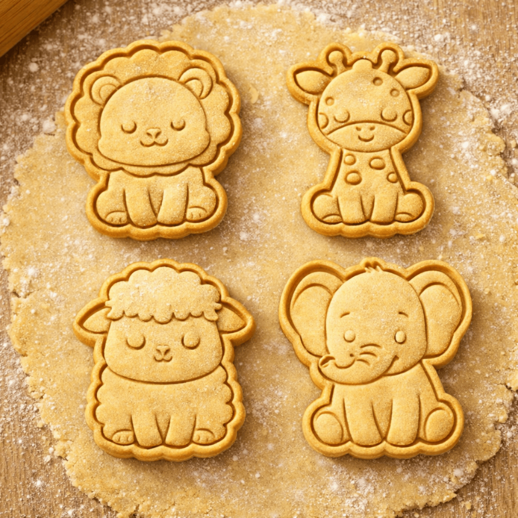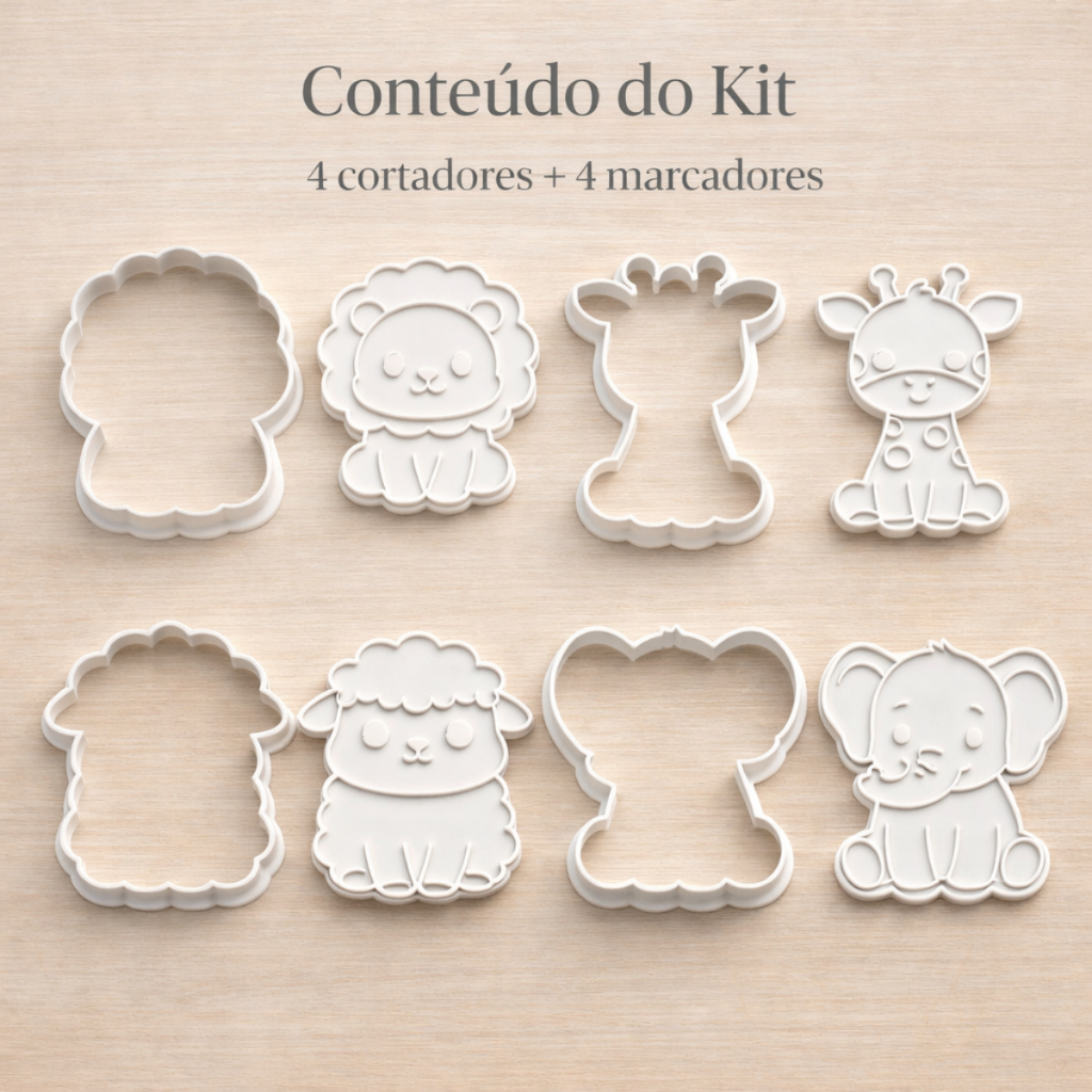 Kit 4 Cortadores de Biscoito Infantil Animais 6cm Cortador+Marcador Bolacha Massinha Pasta Americana