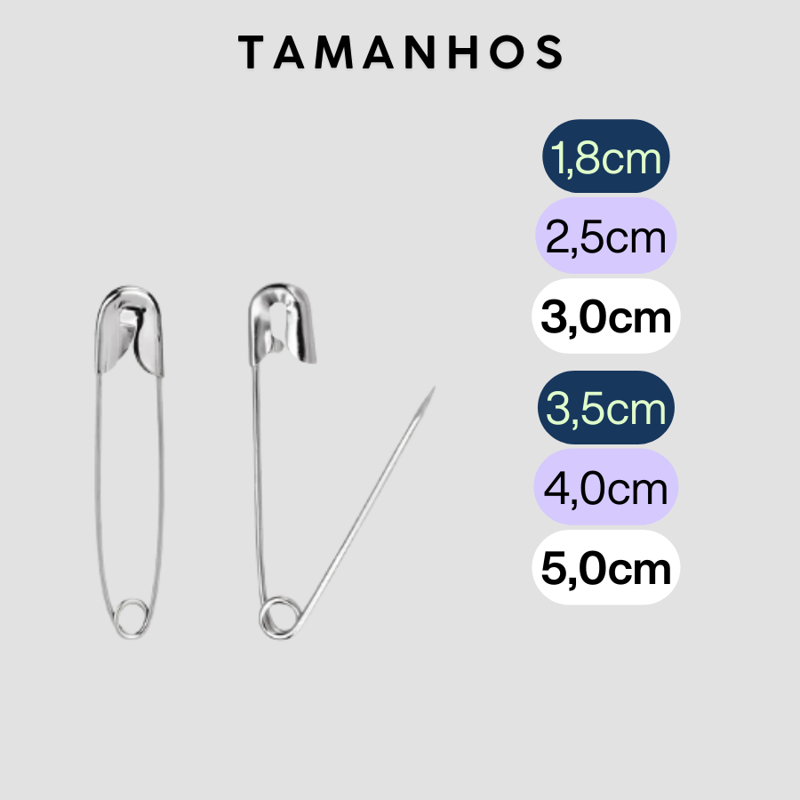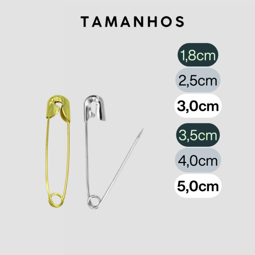Alfinete De Segurança 100 unid Prata e Dourado Níquel Diversos tamanhos