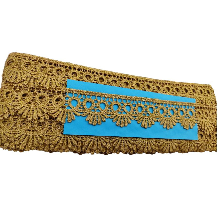 Renda Guipir Sa113 - Larg: 3,0cm - Dourado - Rolo 13,70 Mts Artesanato Decoração Fantasia