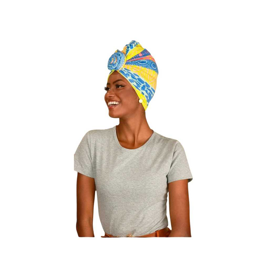 Turbante afro flor com regulador 2x1 (NOVAS ESTAMPAS)