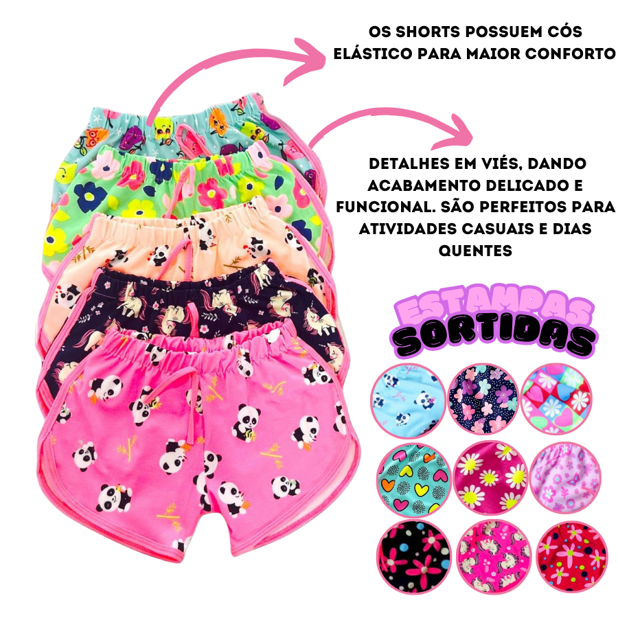KIT 3 short verão infantil ESTAMPA E CORES SORTIDAS