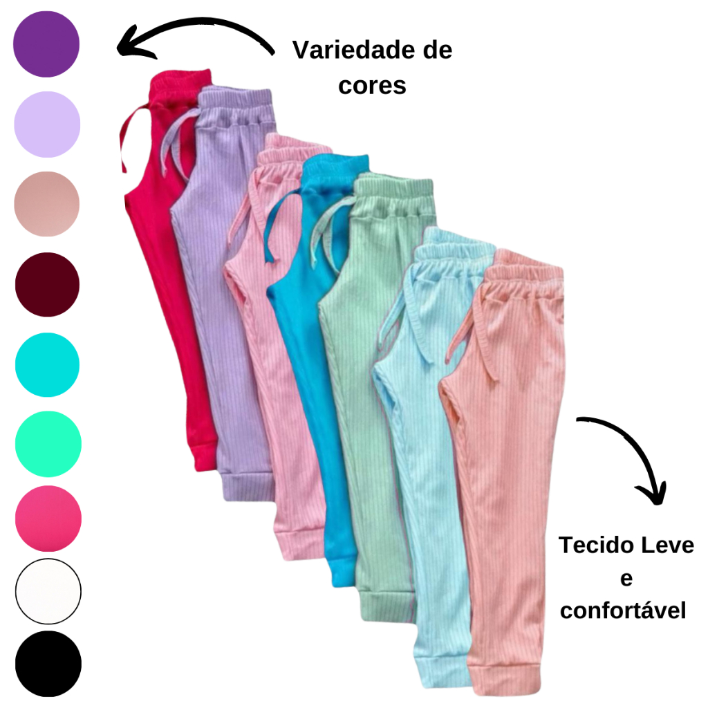 Kit com 3 calças canelada infantil menina estilosa CORES SORTIDAS