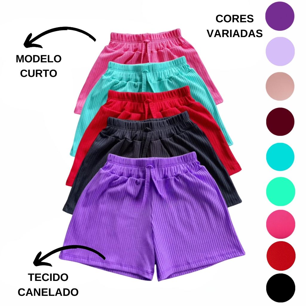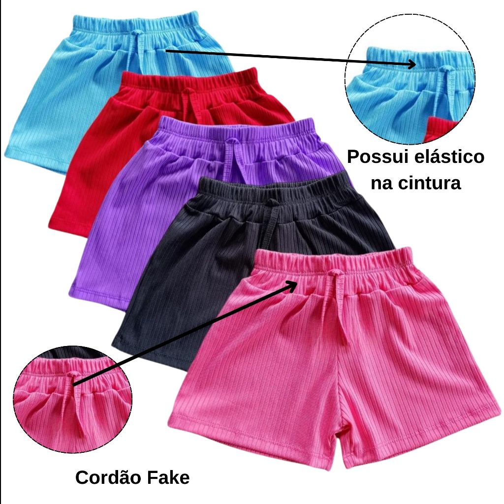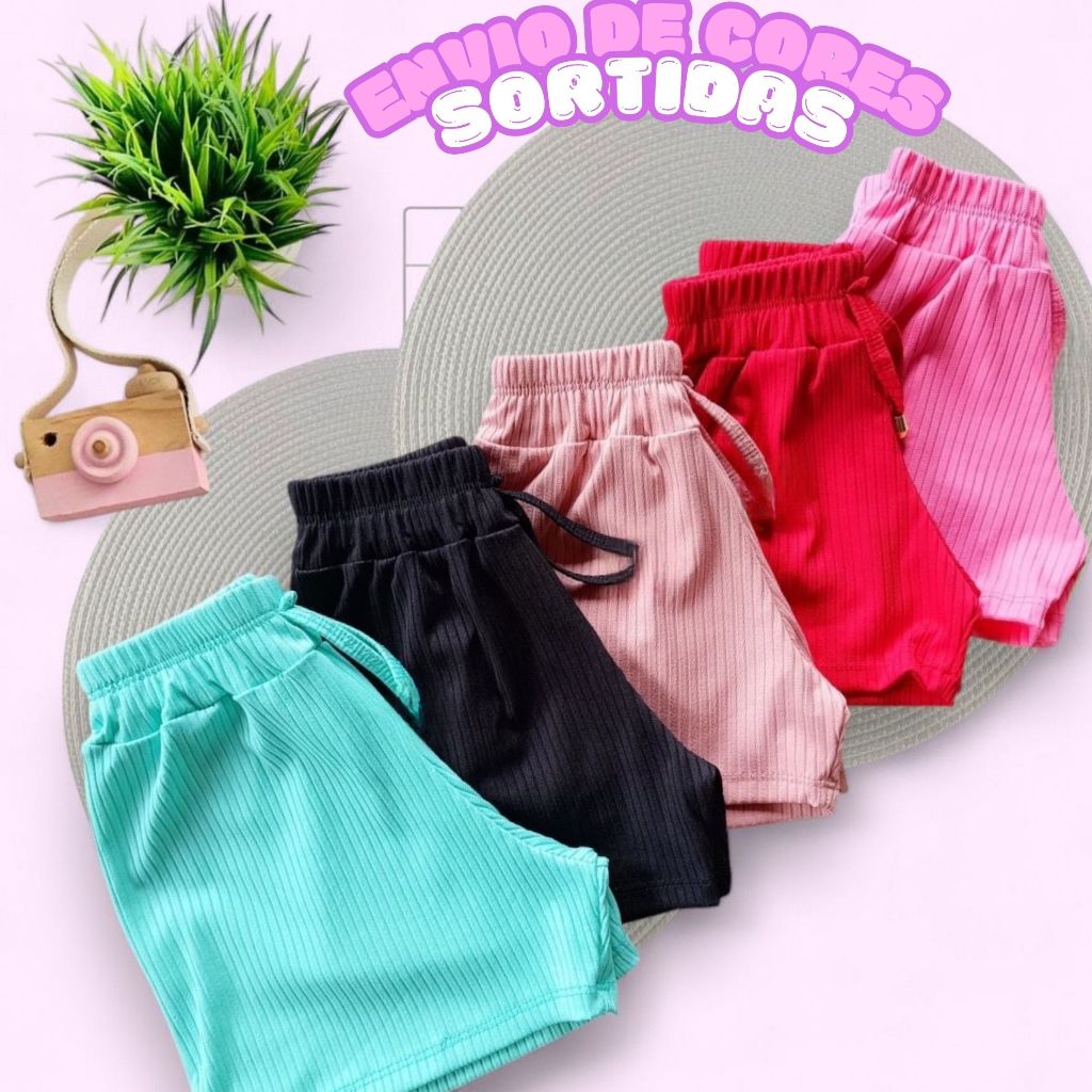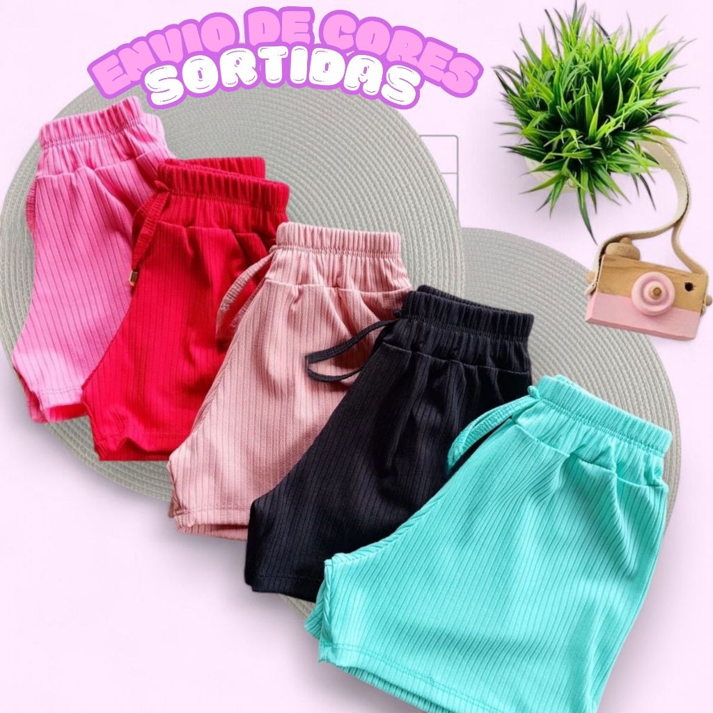 Kit 3 short canelado infantil menina estilo verão CORES SORTIDAS