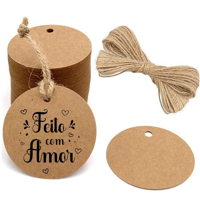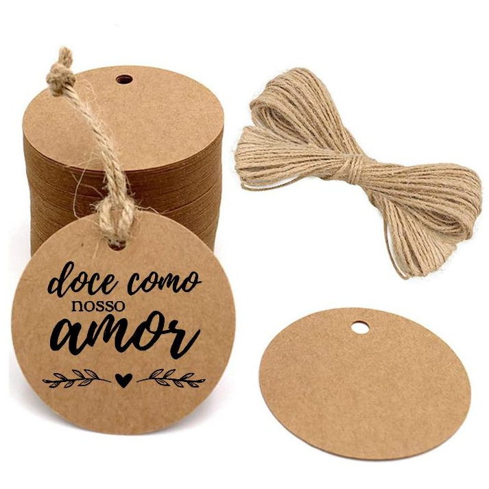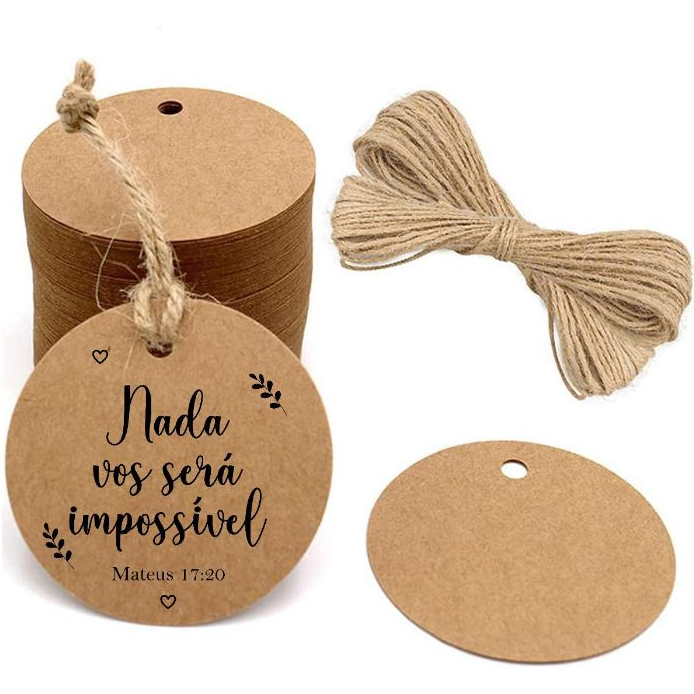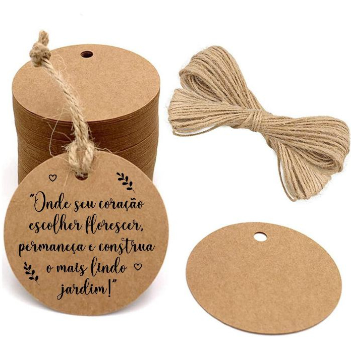 100 Tag Papel Kraft 4cm Mais Fio Incluso Pronta Entrega São Enviadas Com A Arte Escolhida Na Foto