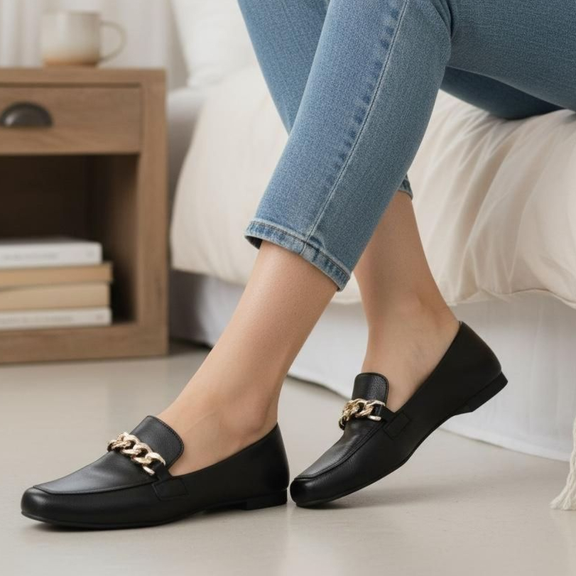 Mocassim Feminino Elegante Casual Confort Bico Quadrado Corrente Promoção Ref. 4706