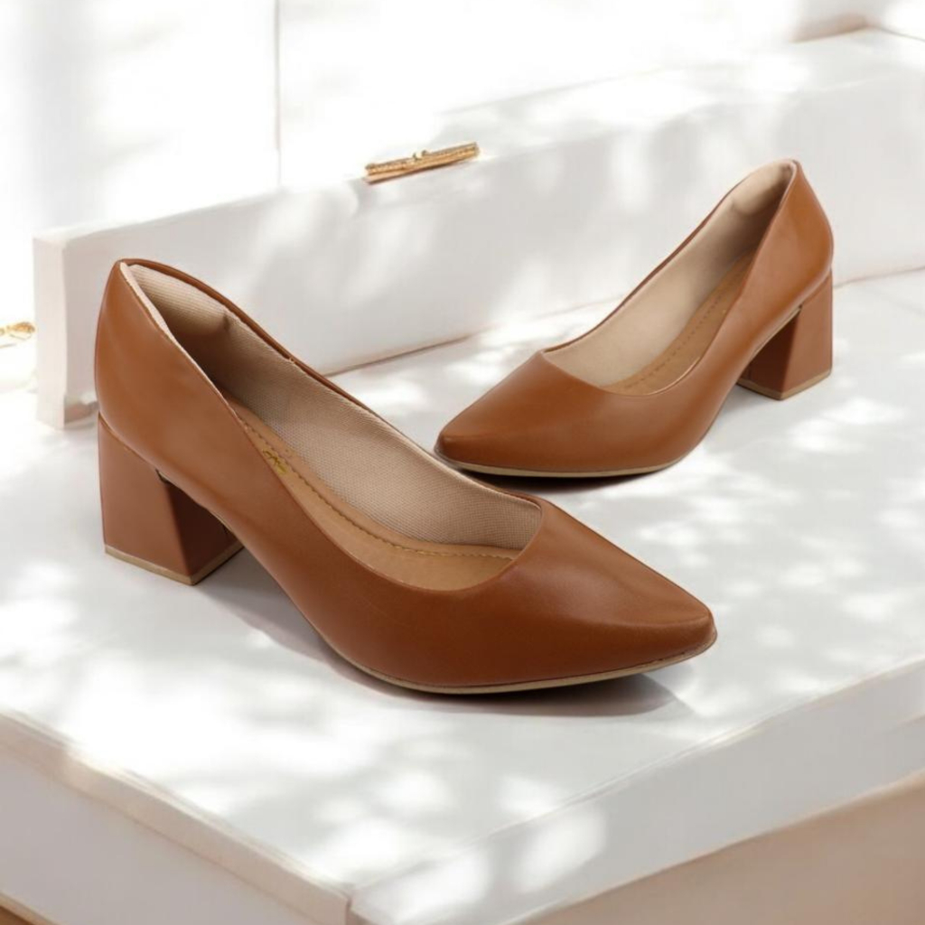 Scarpin Feminino Bellamore Elegante Confortavel Salto Grosso 6cm Preto,Vermelho,Nude,Caramelo,Off