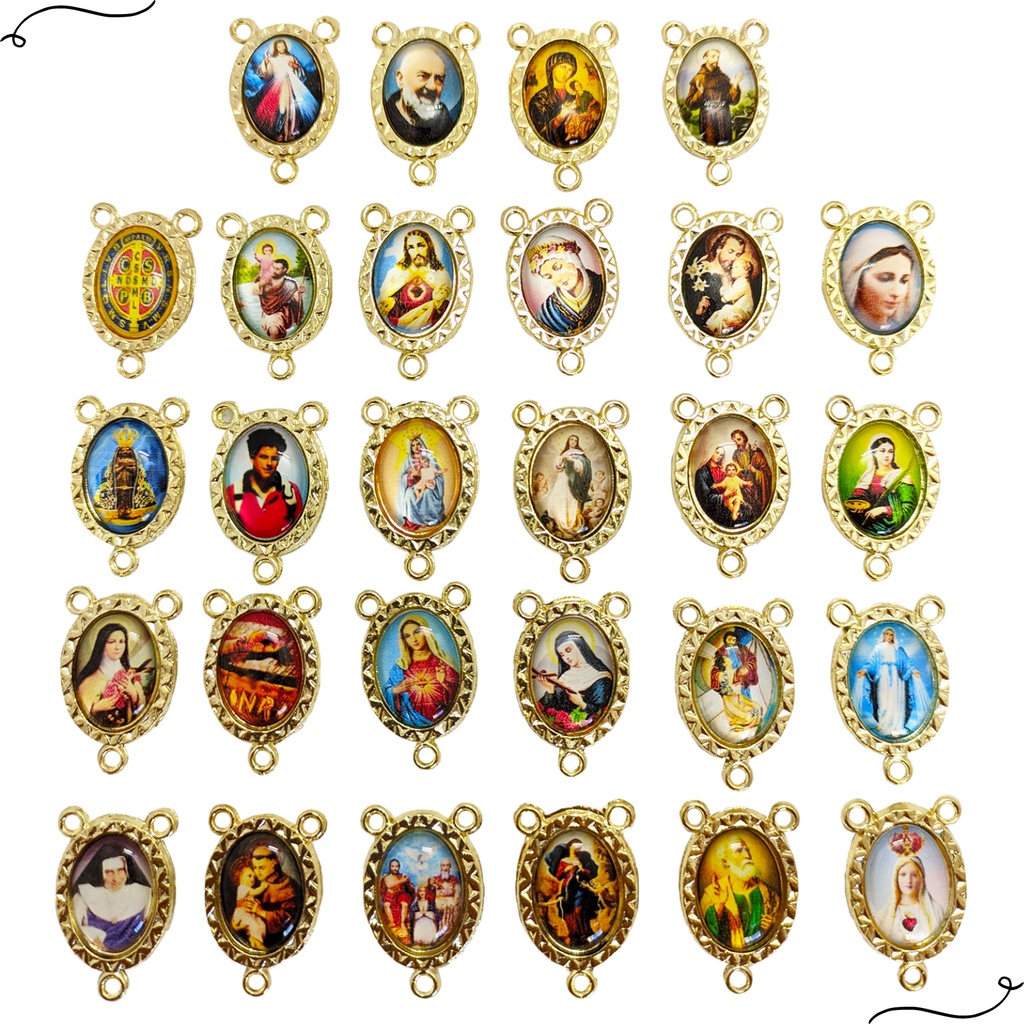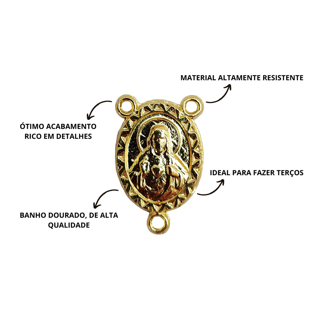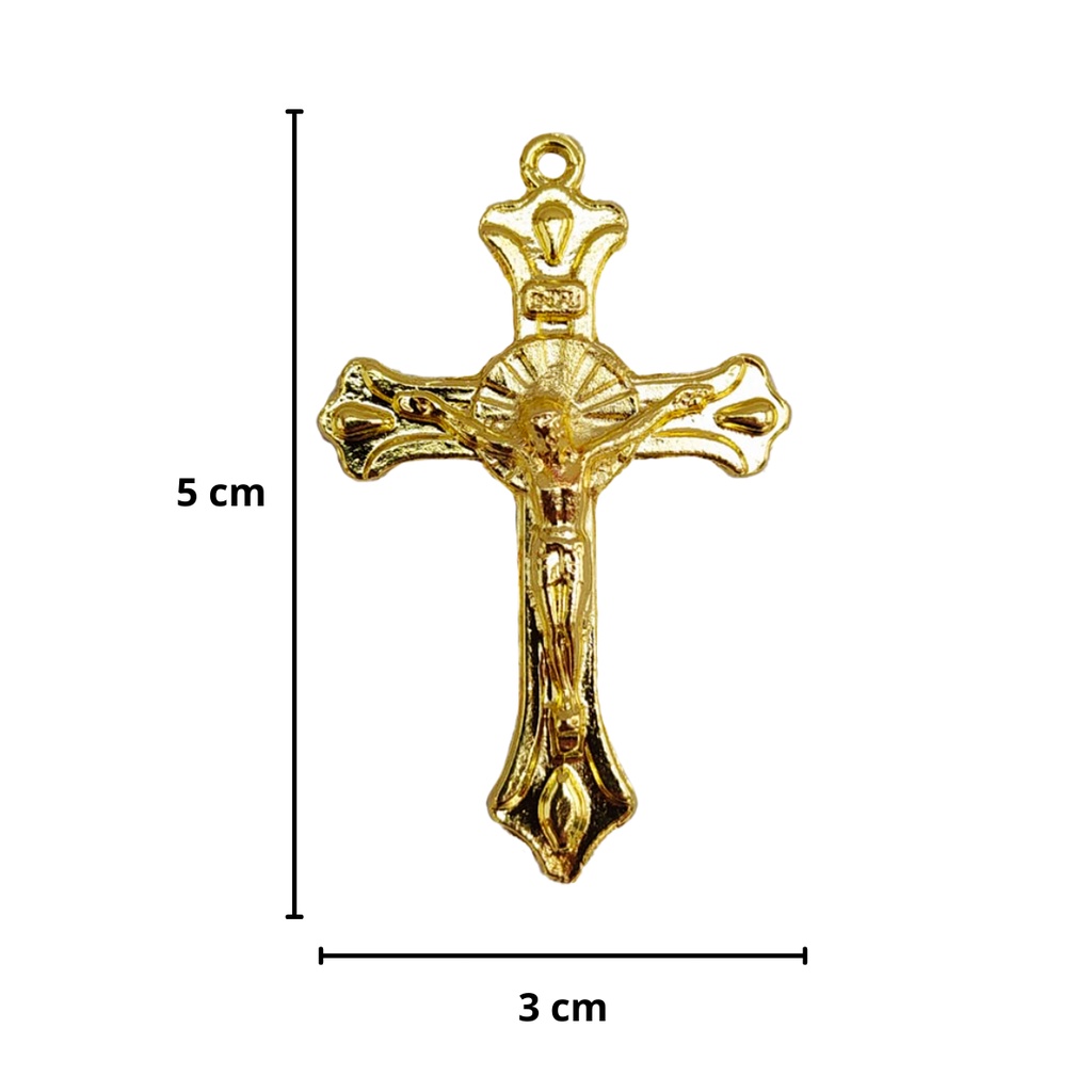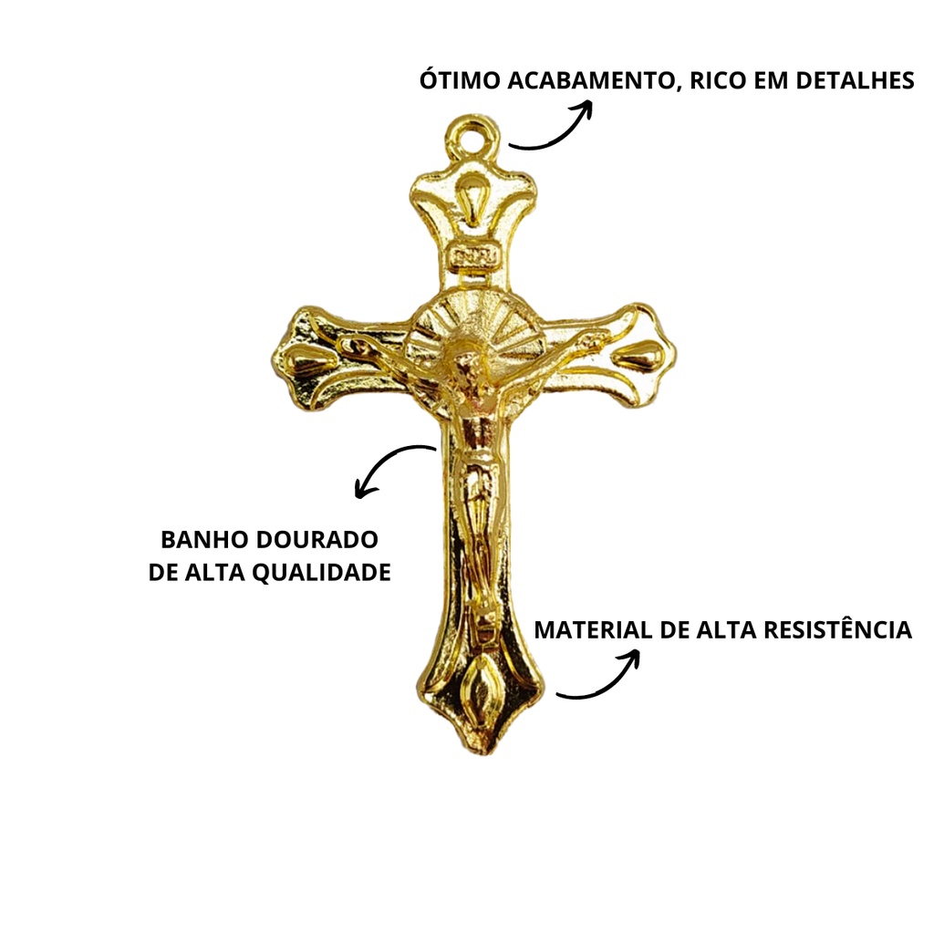 10 Crucifixos + 10 Entremeios Resinados Uma Face Para Terço Dourado Promoção