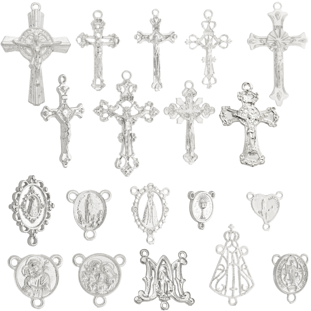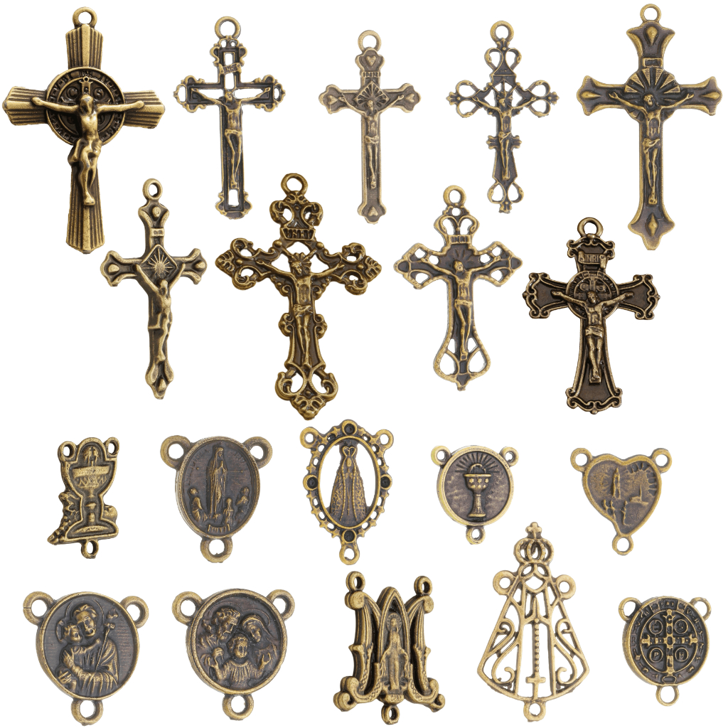 Kit Sortido Entremeios + Crucifixos Para Terços Peças para Montagem de Terço Asas da Fé