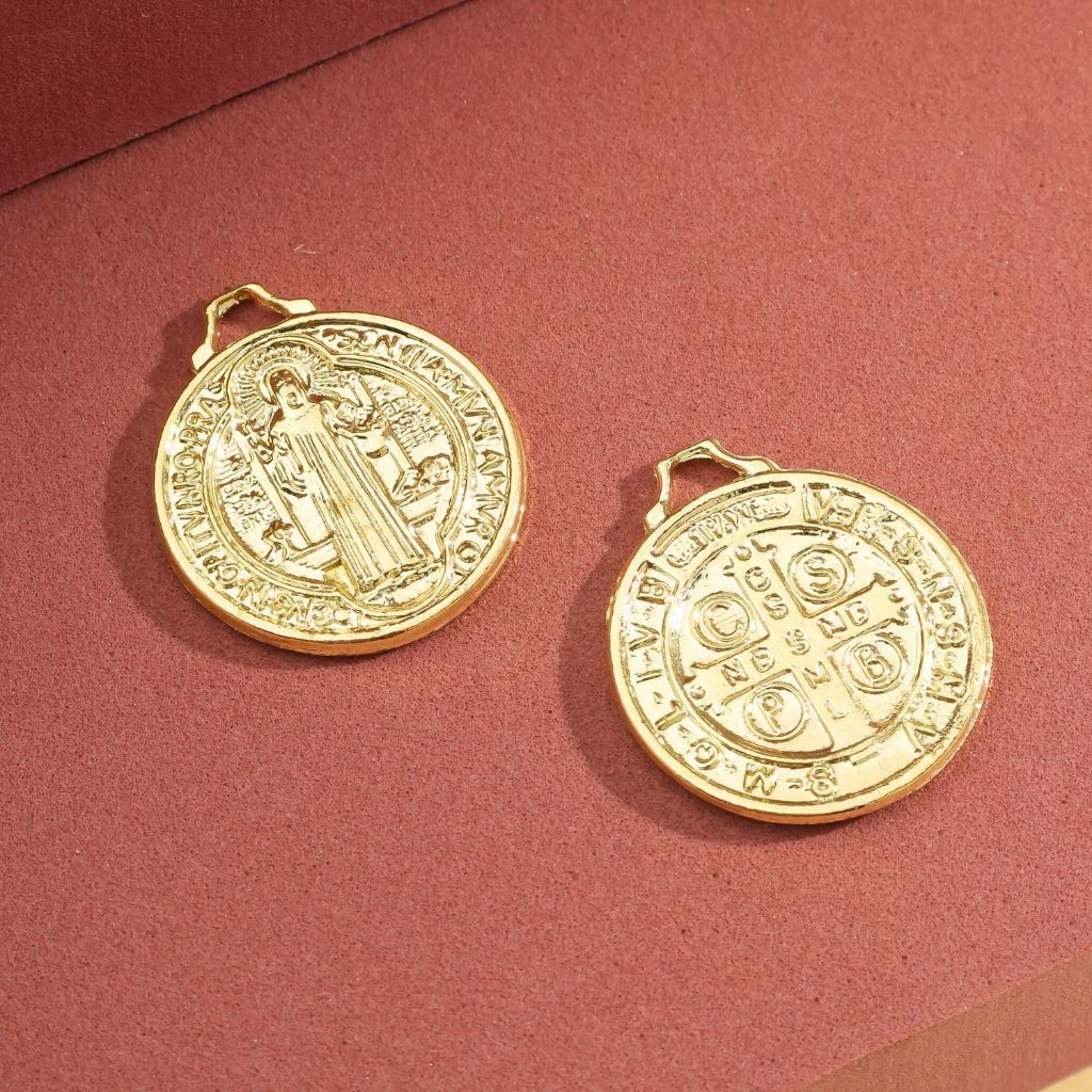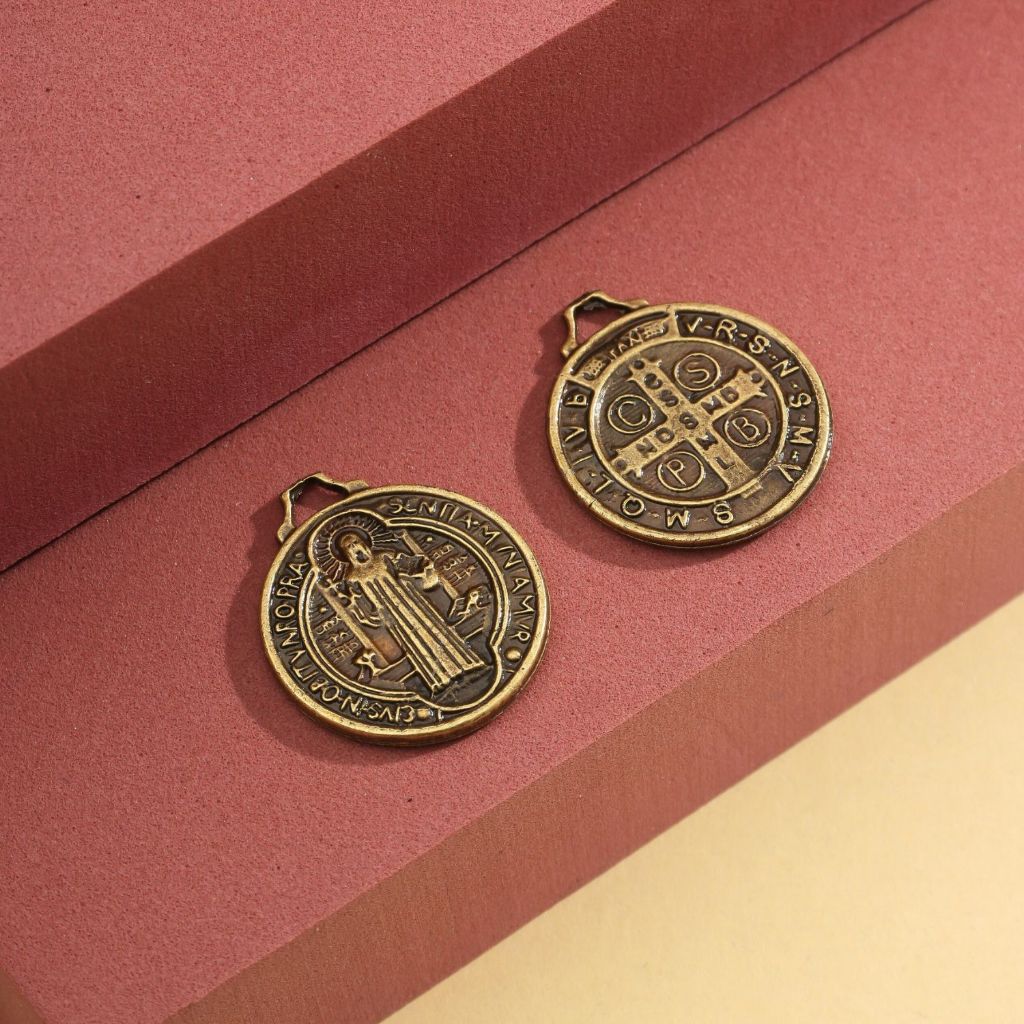 Medalha São Bento Ouro Velho 2x2 cm Pingente São Bento Montagem de Terços Pulseiras e Dezenas