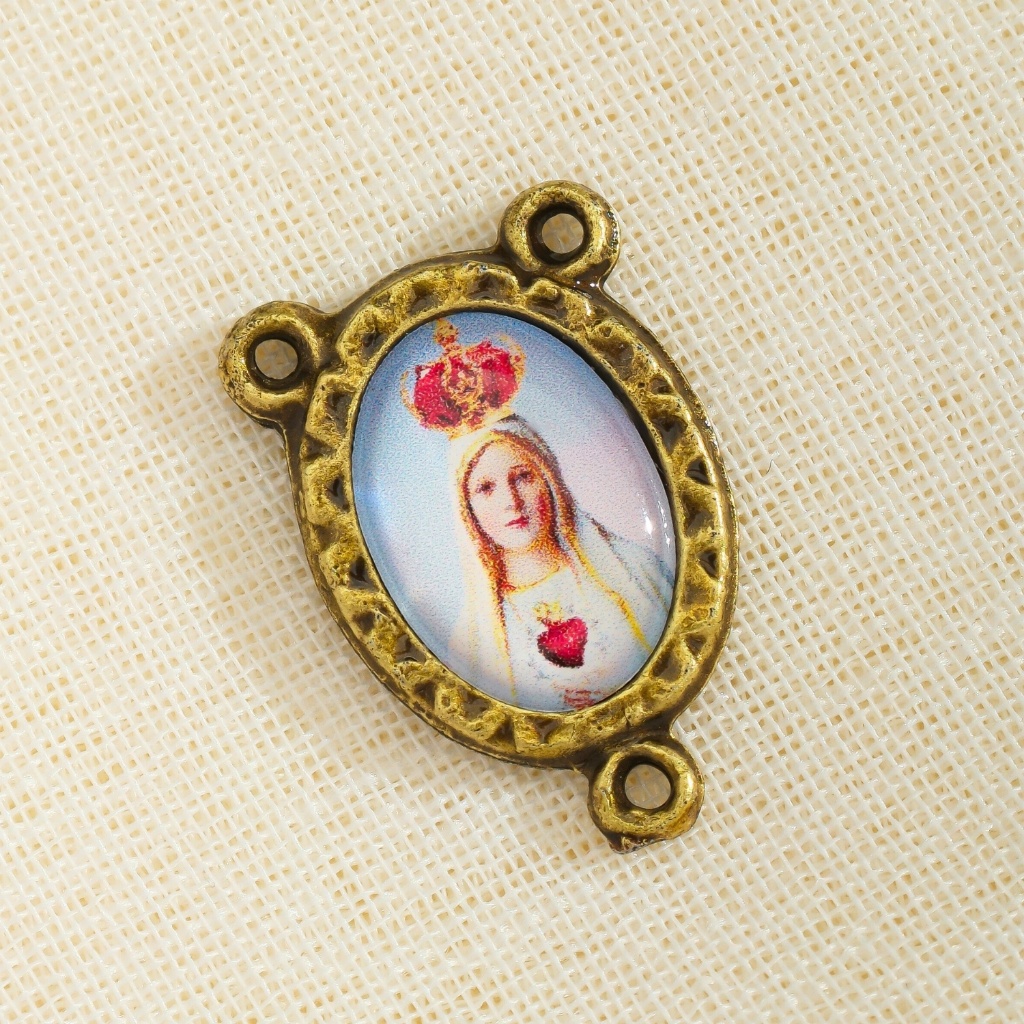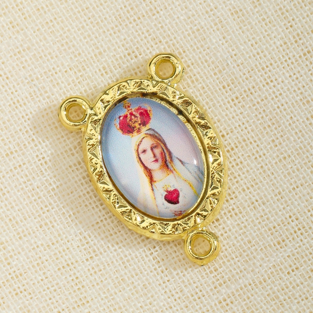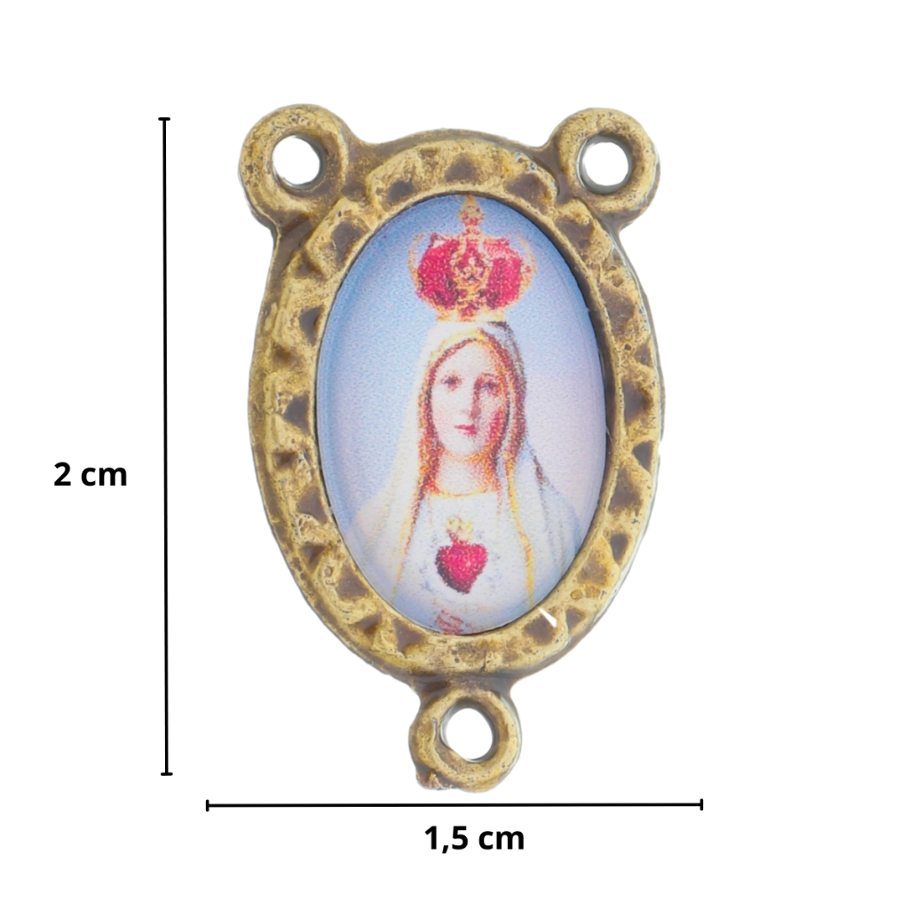 Entremeios para Terço Uma Face Nossa Senhora Fátima Dourado Ouro Velho e Níquel Asas da Fé