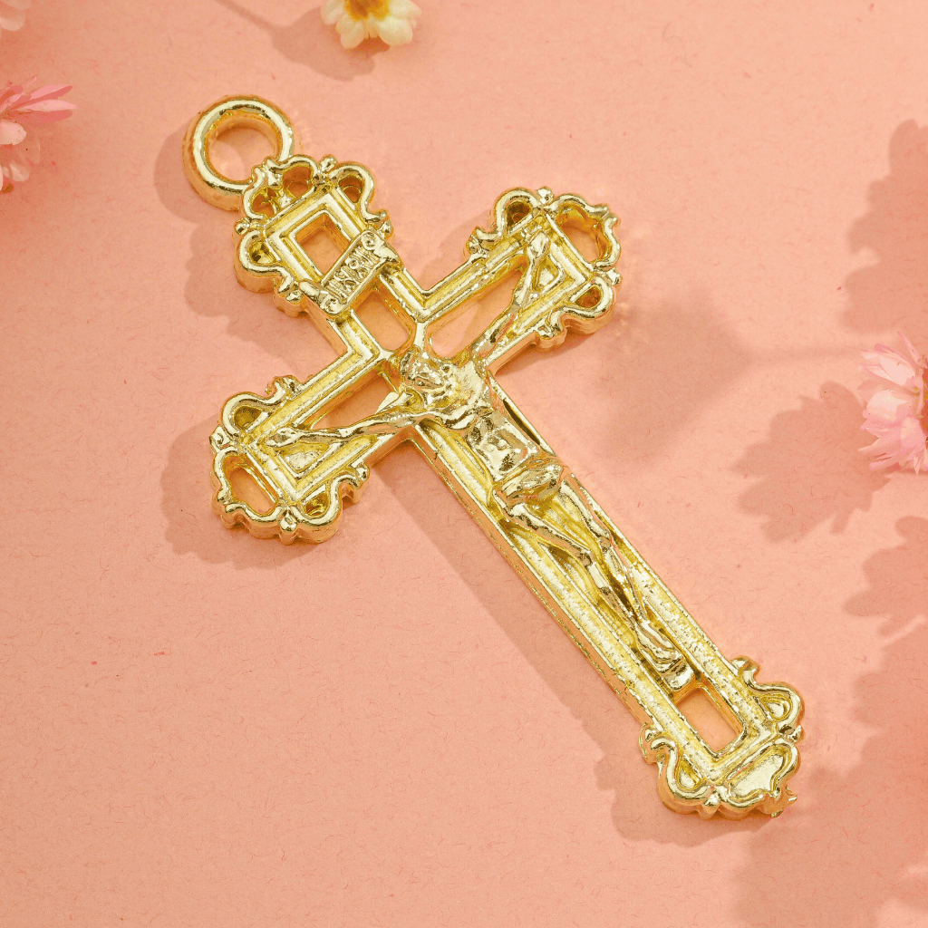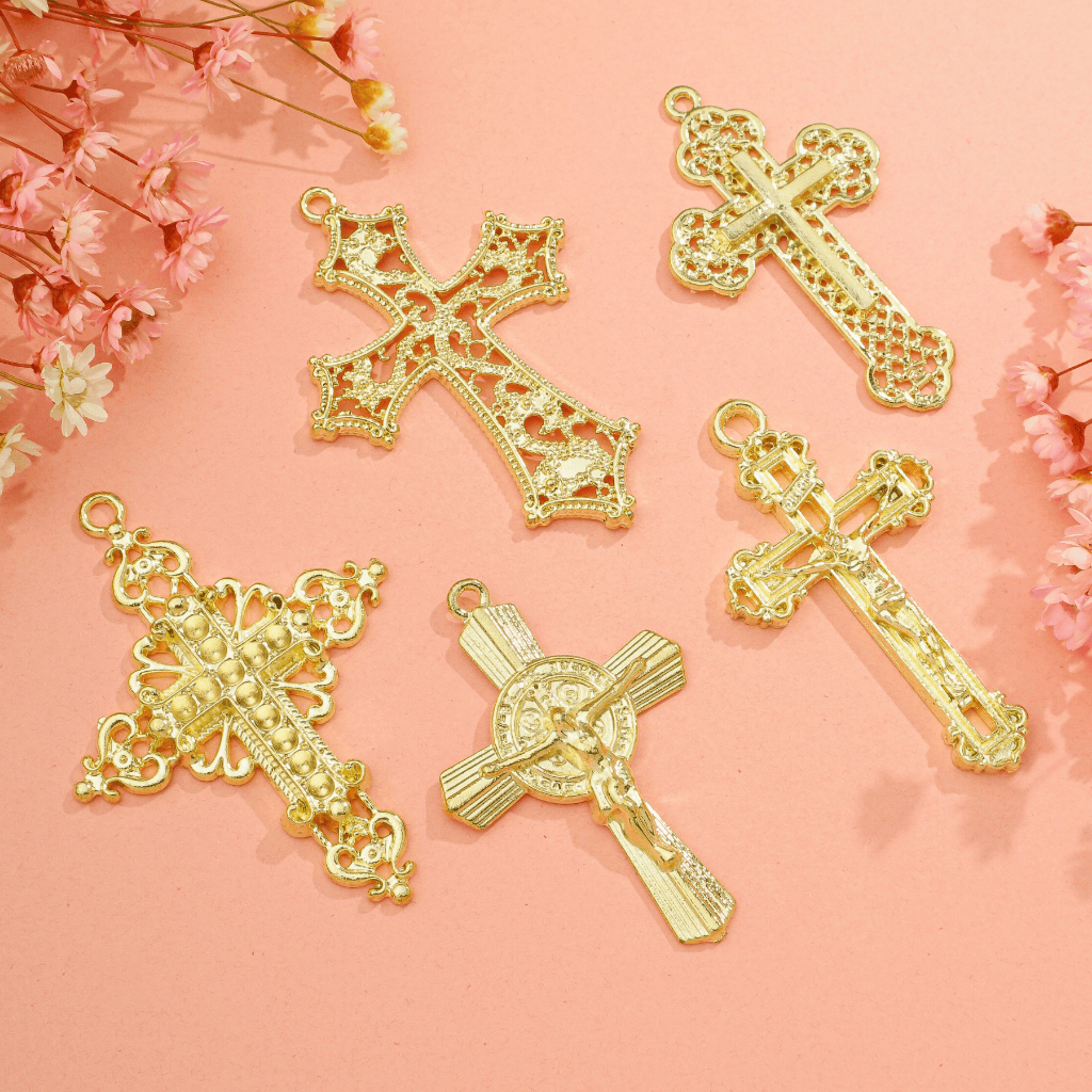 Kit Crucifixo Para Terço Dourado Alta Qualidade Montagem Para Terços Asas da Fé