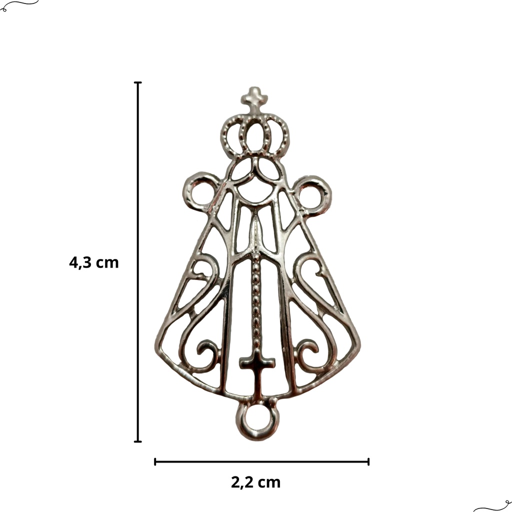 20 Crucifixos 20 Entremeios Nossa Senhora Aparecida Prata e Dourado Para Terço