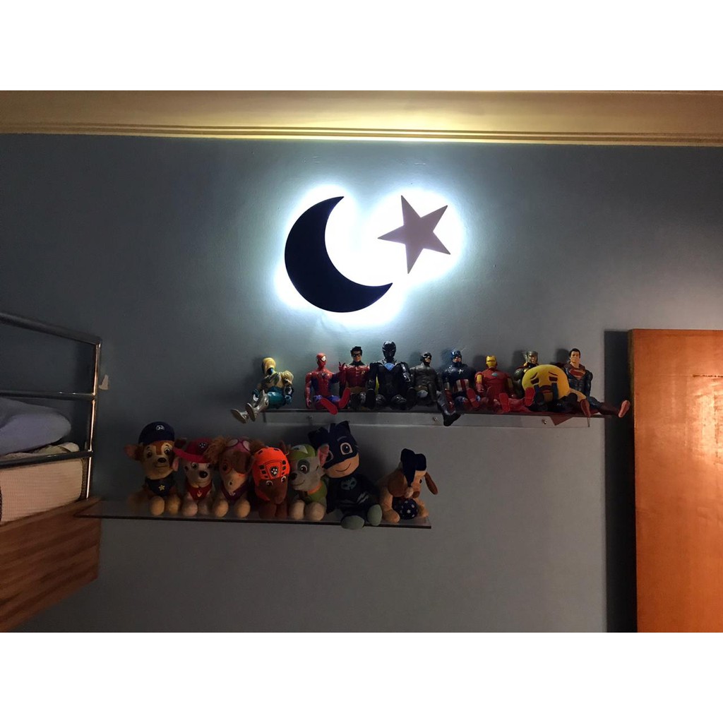 Kit Luminária Lua & Estrela Pilha Decoração Parede