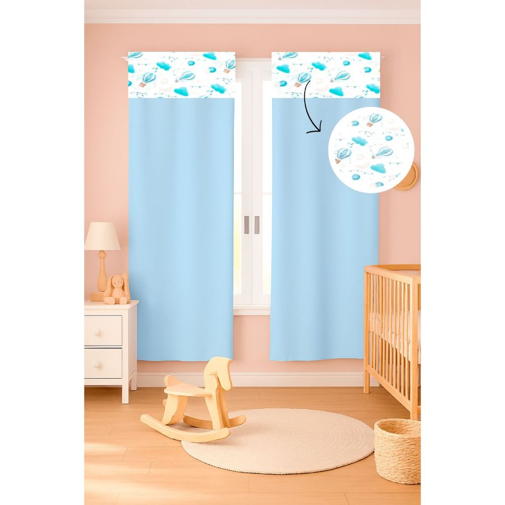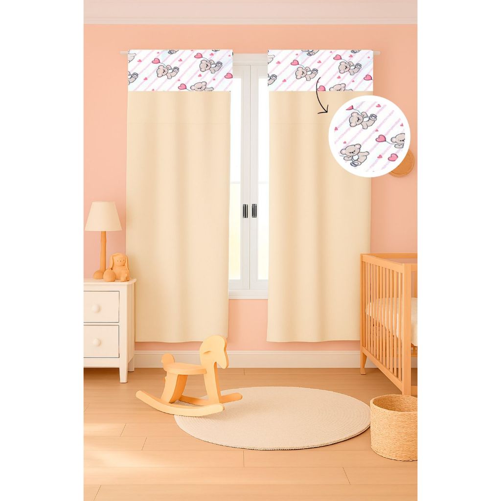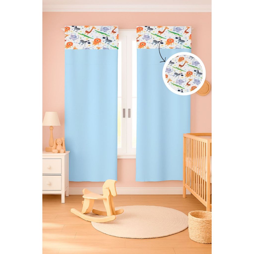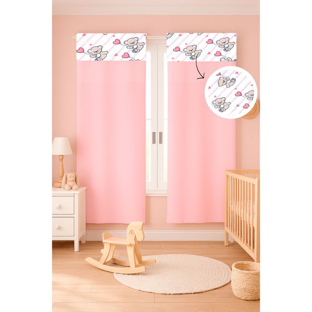 Cortina c/ Detalhe Estampado Menina e Menino 2,55 x 1,70 Micropercal 400 fios