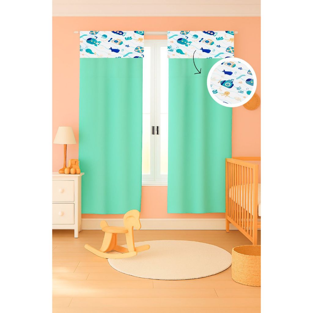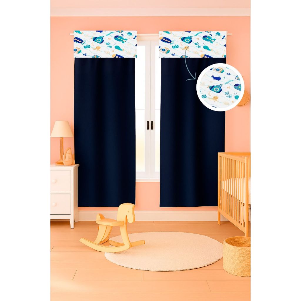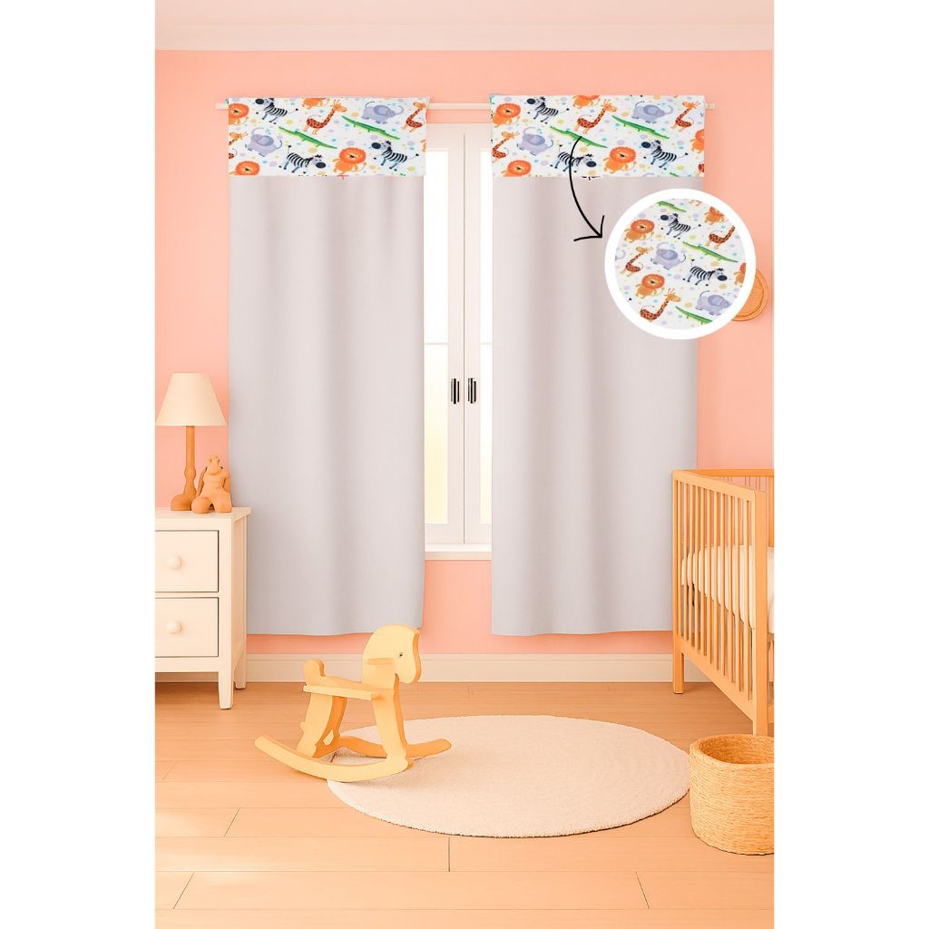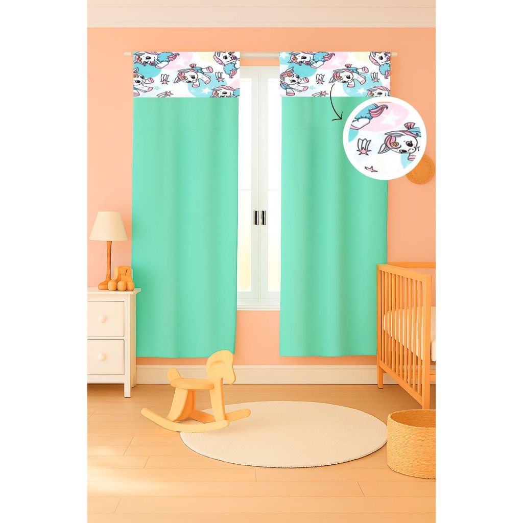 Cortina c/ Detalhe Estampado Menina e Menino 2,55 x 1,70 Micropercal 400 fios