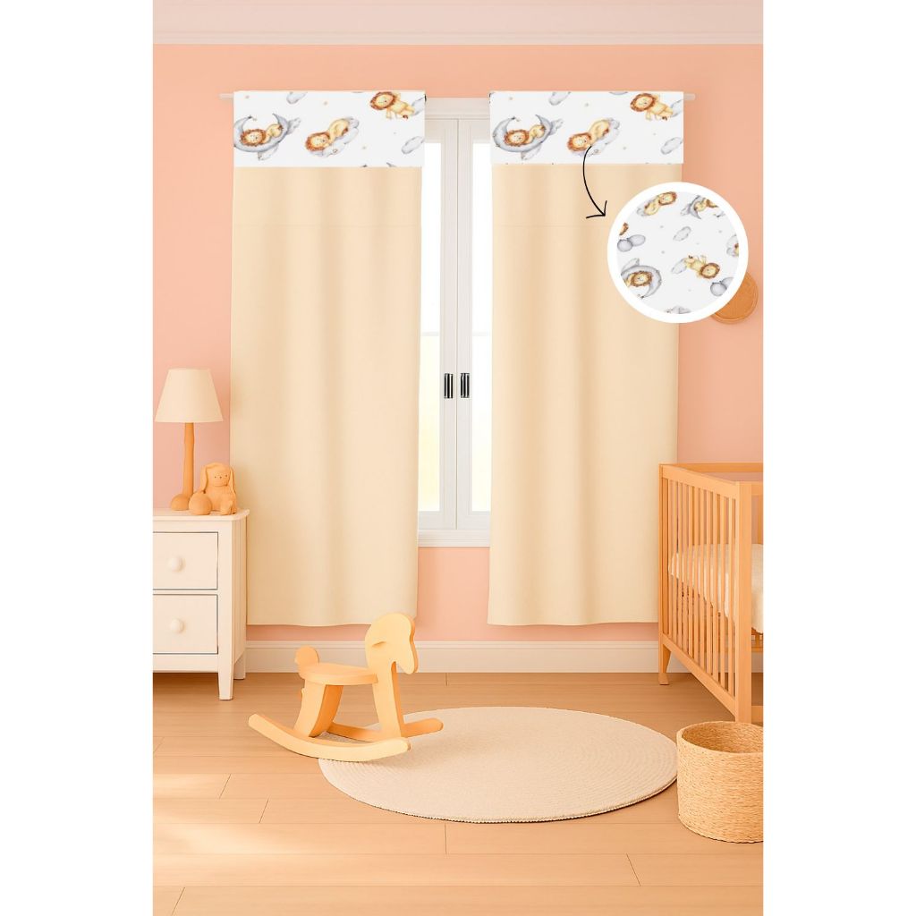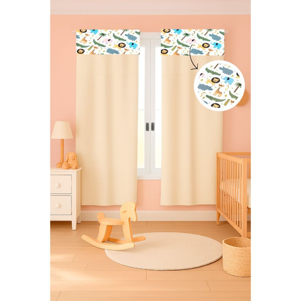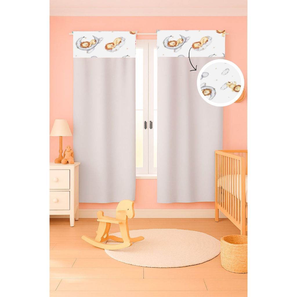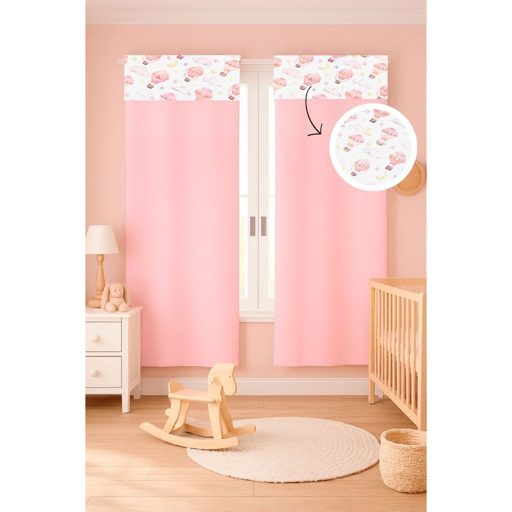 Cortina c/ Detalhe Estampado Menina e Menino 2,55 x 1,70 Micropercal 400 fios