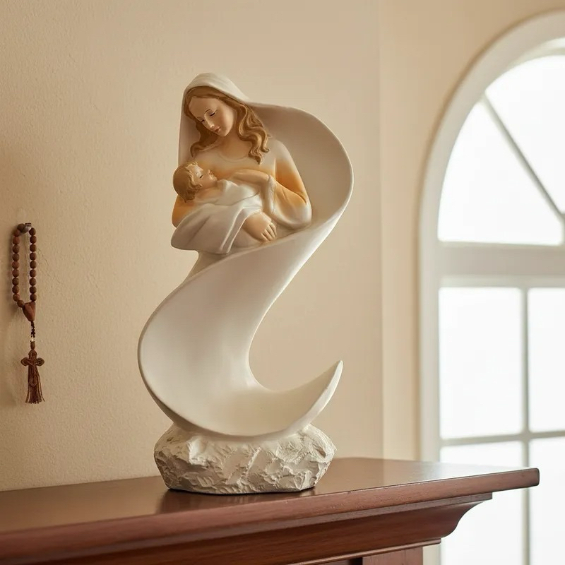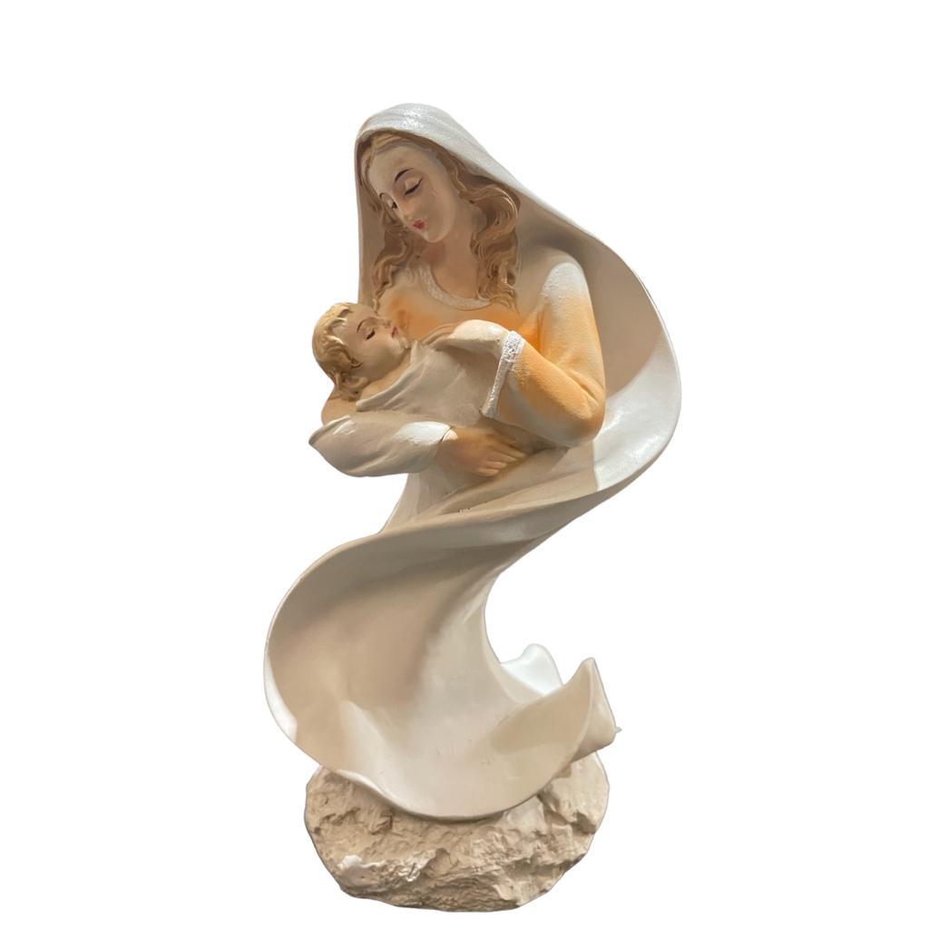 Imagem Maria e Jesus Resina Importada Mãe Rainha Presente Dia Das Mães