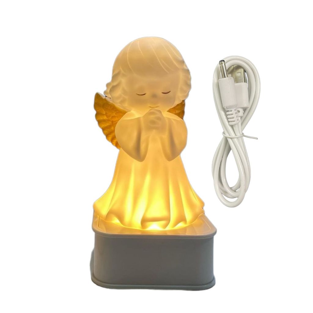Abajur Luminária Anjo da Guarda Asa Dourado Plástico e Borracha pilha e USB 18 cm Muda de Cor ao Toque
