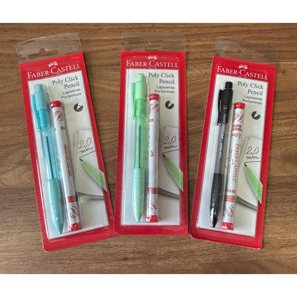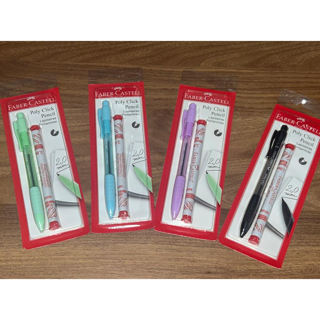 Lapiseira 2.0mm Faber Castell Poly Click com 06 grafite e apontador na ponta voltas as aulas