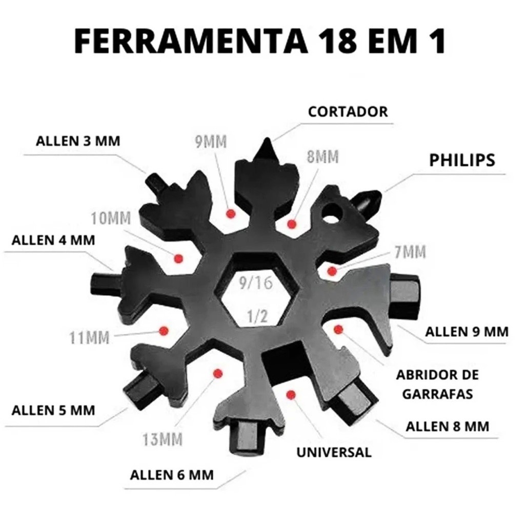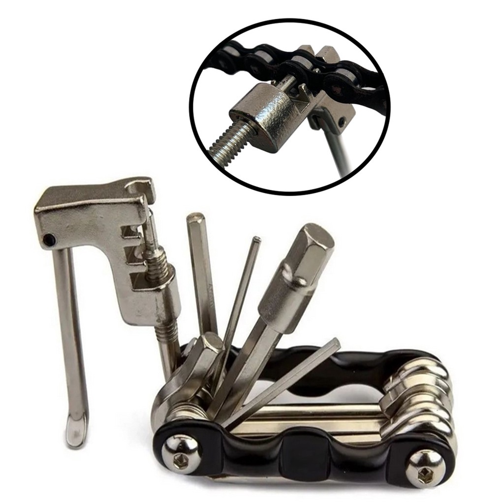 Kit Chave Canivete 12 Funções Tira Pino Corrente Bicicleta + Chaveiro Floco Neve Phillips Fenda