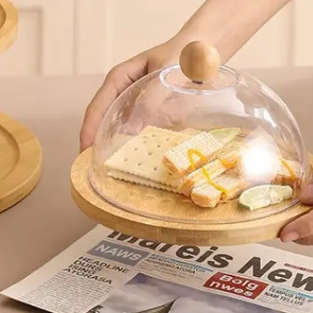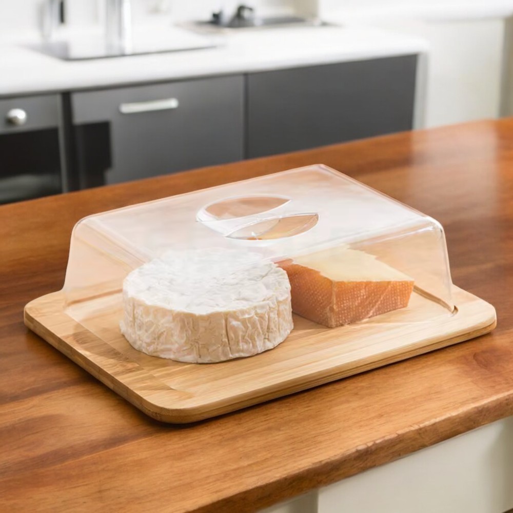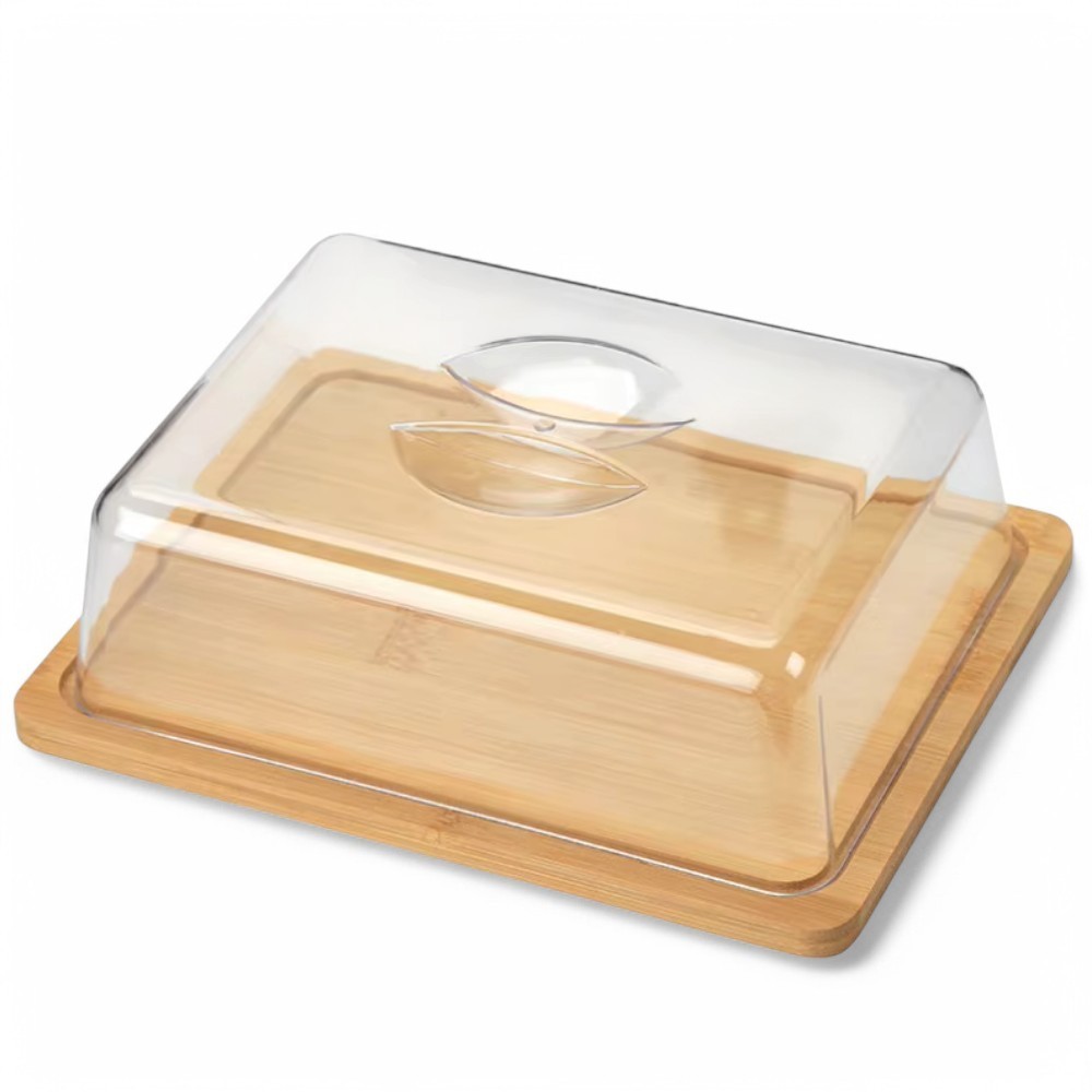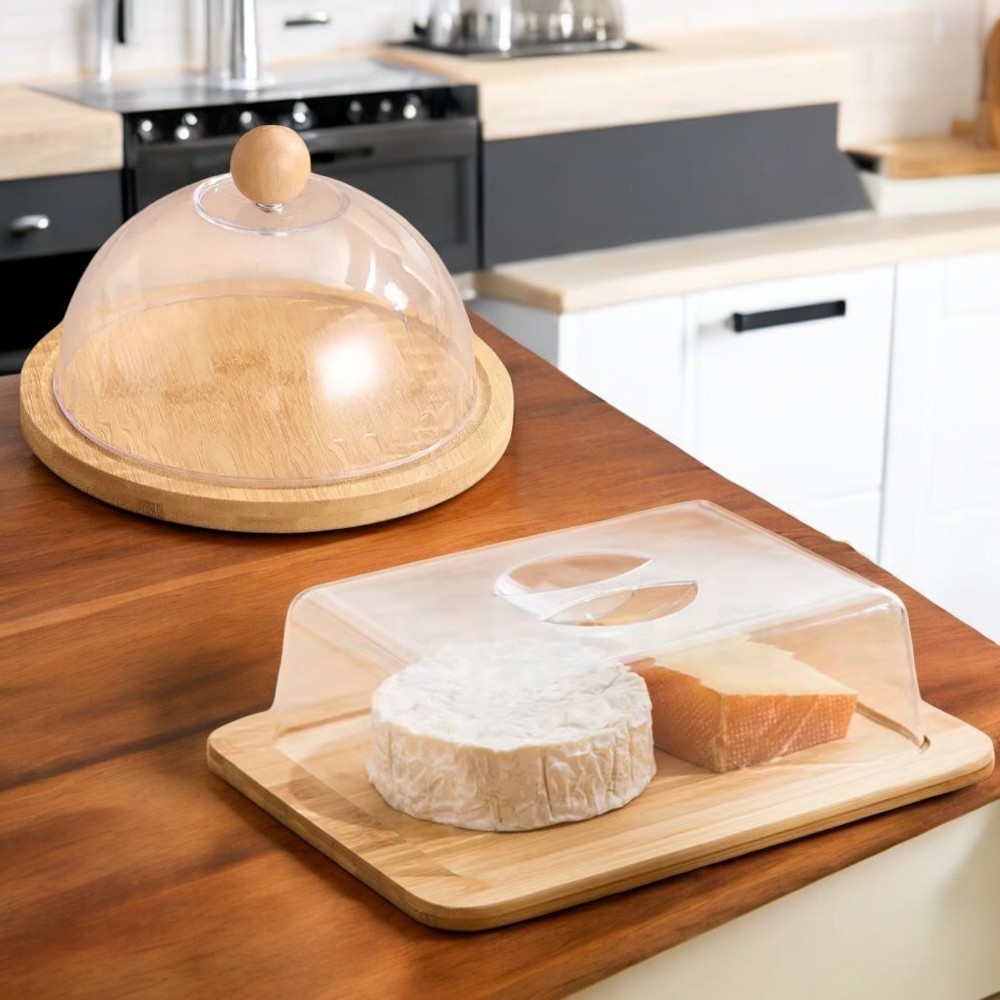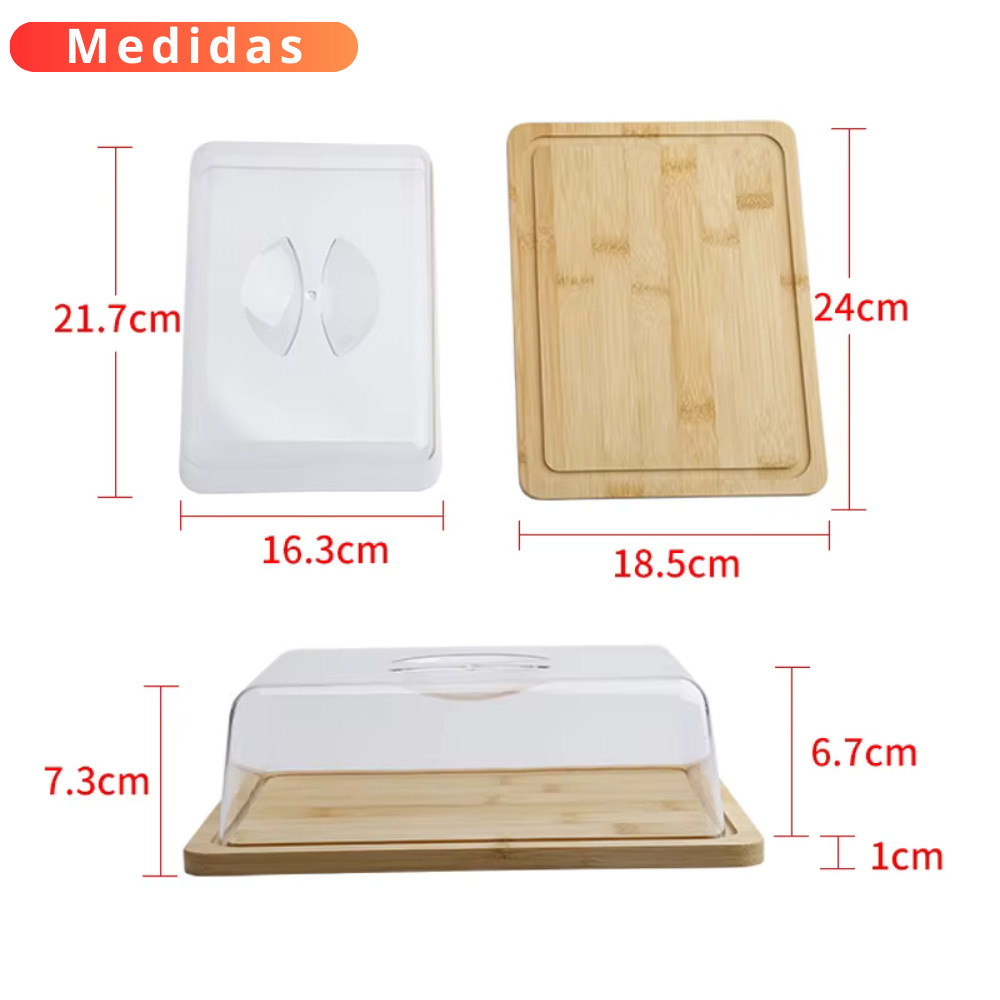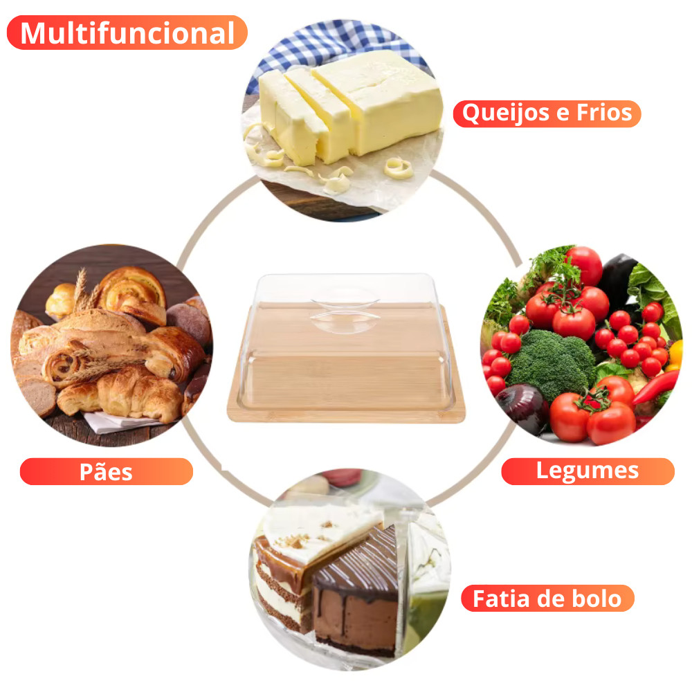 Kit Porta Frios Elegante em Bambu com Tampa Pote Boleira Cozinha Bandeja Manteiga Queijo Queijeira
