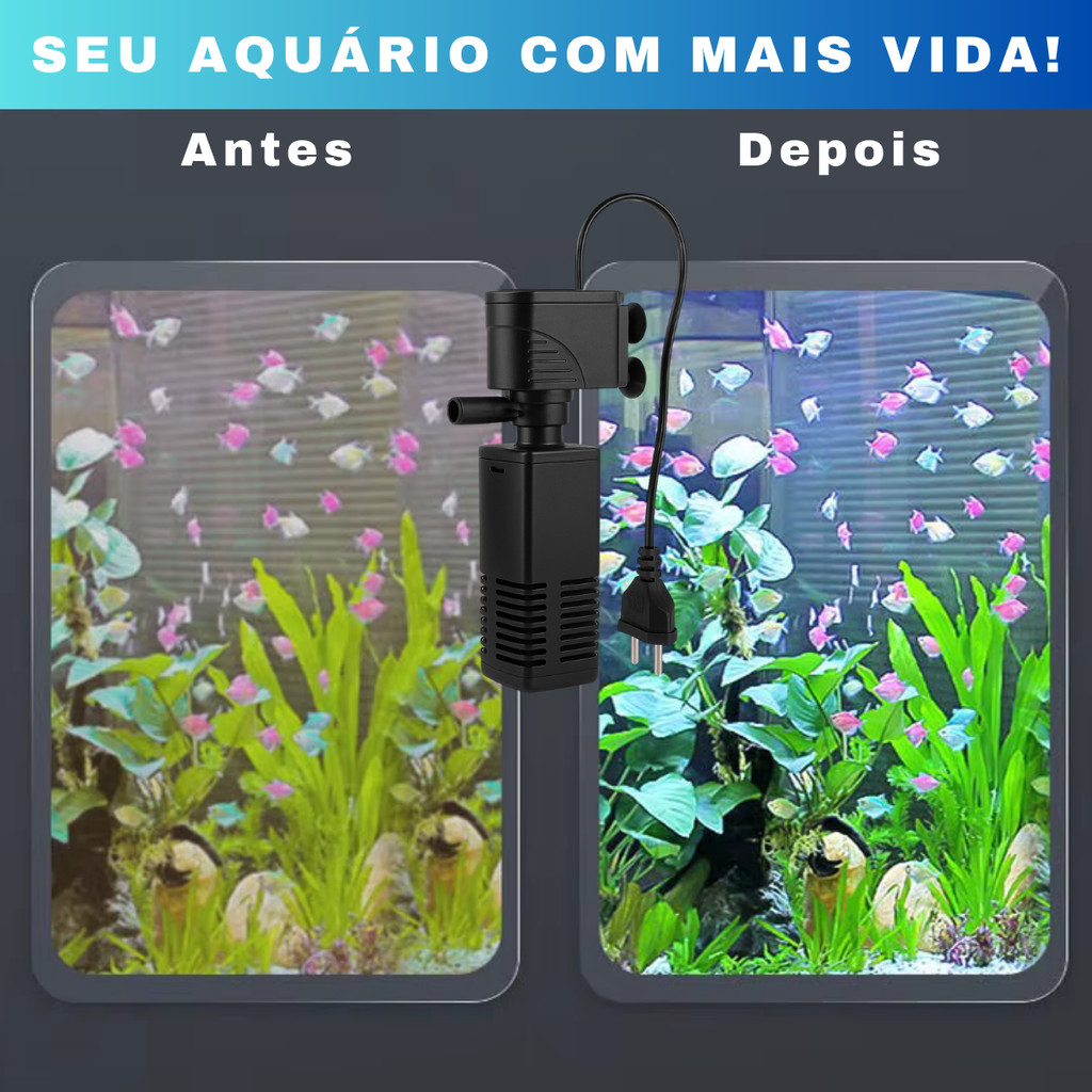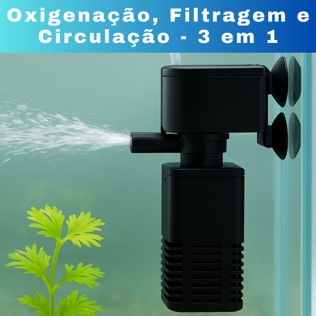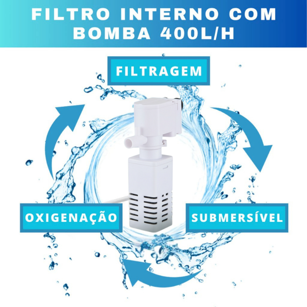 FILTRO INTERNO AQUARIO 400L/H SUBMERSO COM BOMBA AERADOR DE OXIGENIO PARA AQUÁRIOS ATÉ 40L
