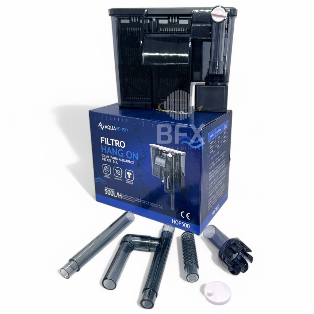 Filtro Externo Aquario 500l/h Cascata Aquaverso Original Hof-500 Hang On Para Aquarios até 70 Litros