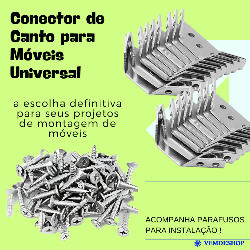 kit 20 Cantoneira Reforçada Universal Para Móveis armários Gabinetes Guarda Roupas Conector Madeira