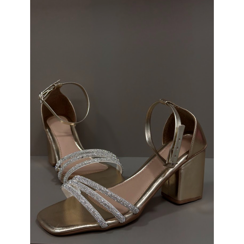 Sandália Feminina Salto Bloco Grosso com Traseiro Fivela Tiras Strass Brilho Conforto Promoção (SALTO-ARIANI)