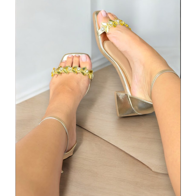 Sandália feminina de pedraria salto bloco grosso strass brilho fivela traseiro promoção (SALTO-KAROL-03)