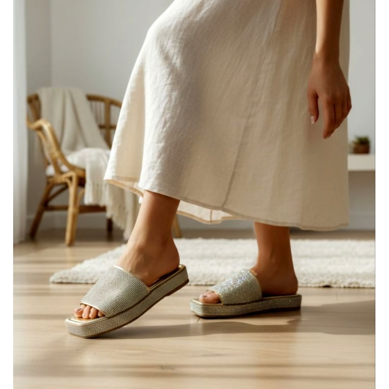 Sandália Flat Feminina com Strass – Plataforma Confortável e Elegante (FLAT-LAURA02)