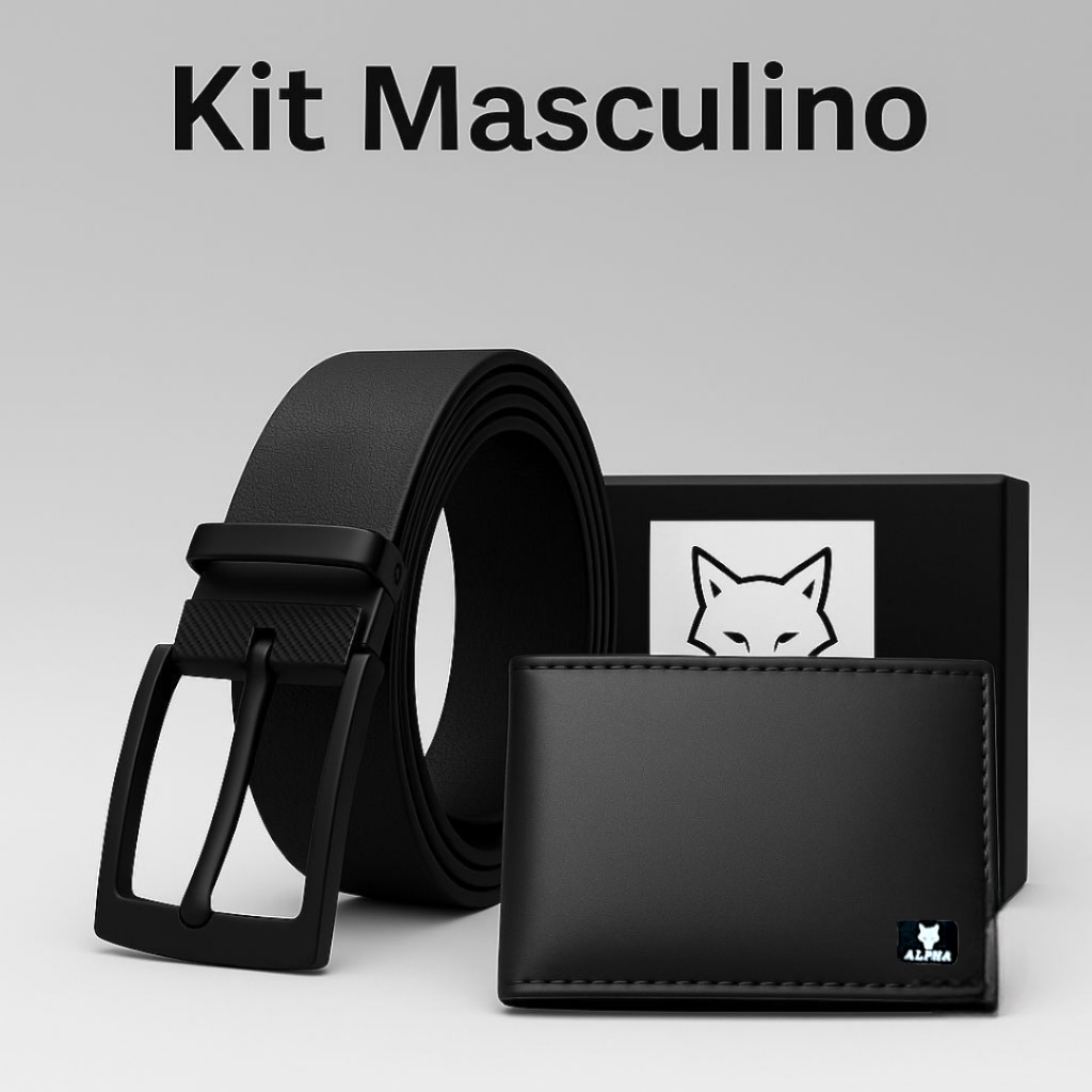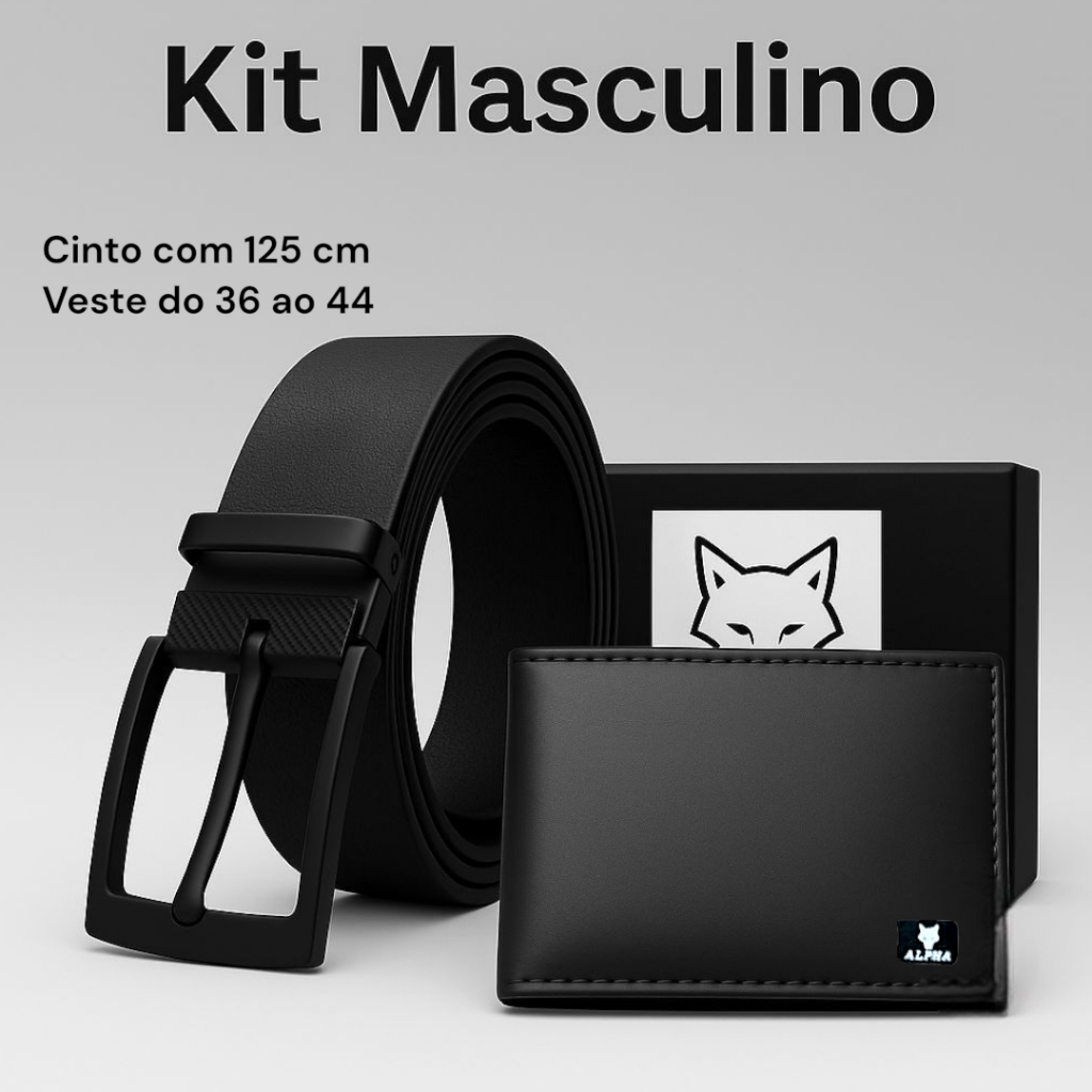 Kit Carteira Masculina Slim + Cinto Couro Montana Premium 125/150CM Fivela Preta