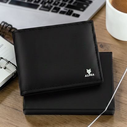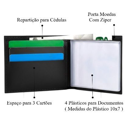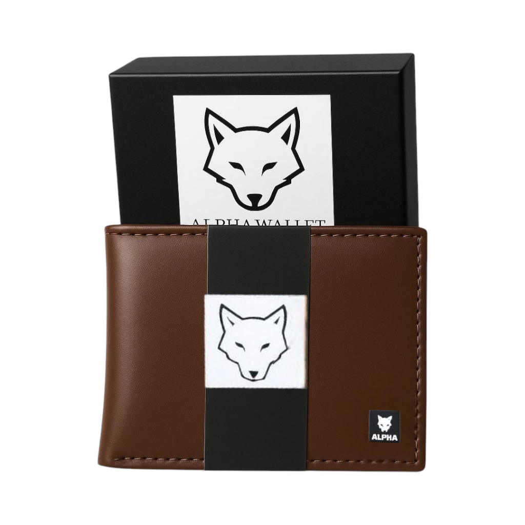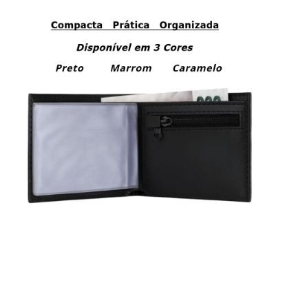 Carteira Masculina Couro Sintético Premium Preta Marrom Caramelo - Caixa Elegante Alpha