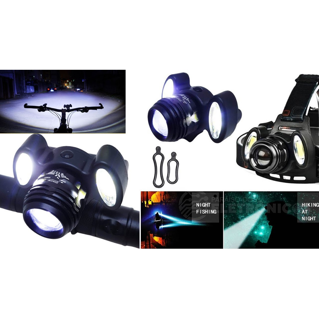 Farol Lanterna Bike 3 Focos Led Com Zoom Recarregável Ciclismo Pesca Trilha Cabeça