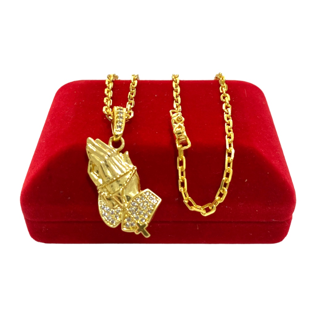 CORRENTE CADEADO 3MM - MÃO ORAÇÃO - BANHO DE OURO 18K - UNISSEX - FEIXO CANHÃO PREMIUM