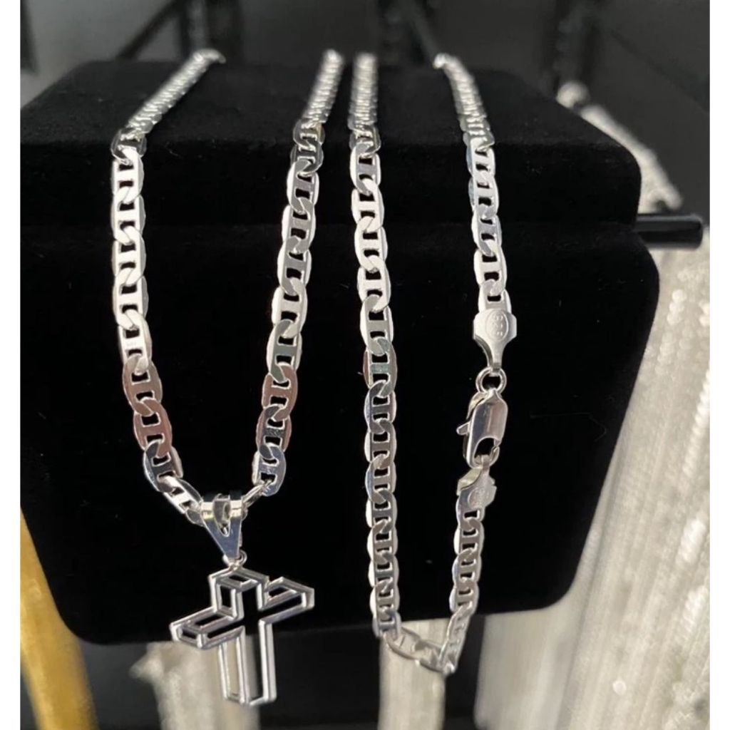 Colar Piastrine 4MM Prata 925 Legitima Com 70 Centimetros + Pingente 3D