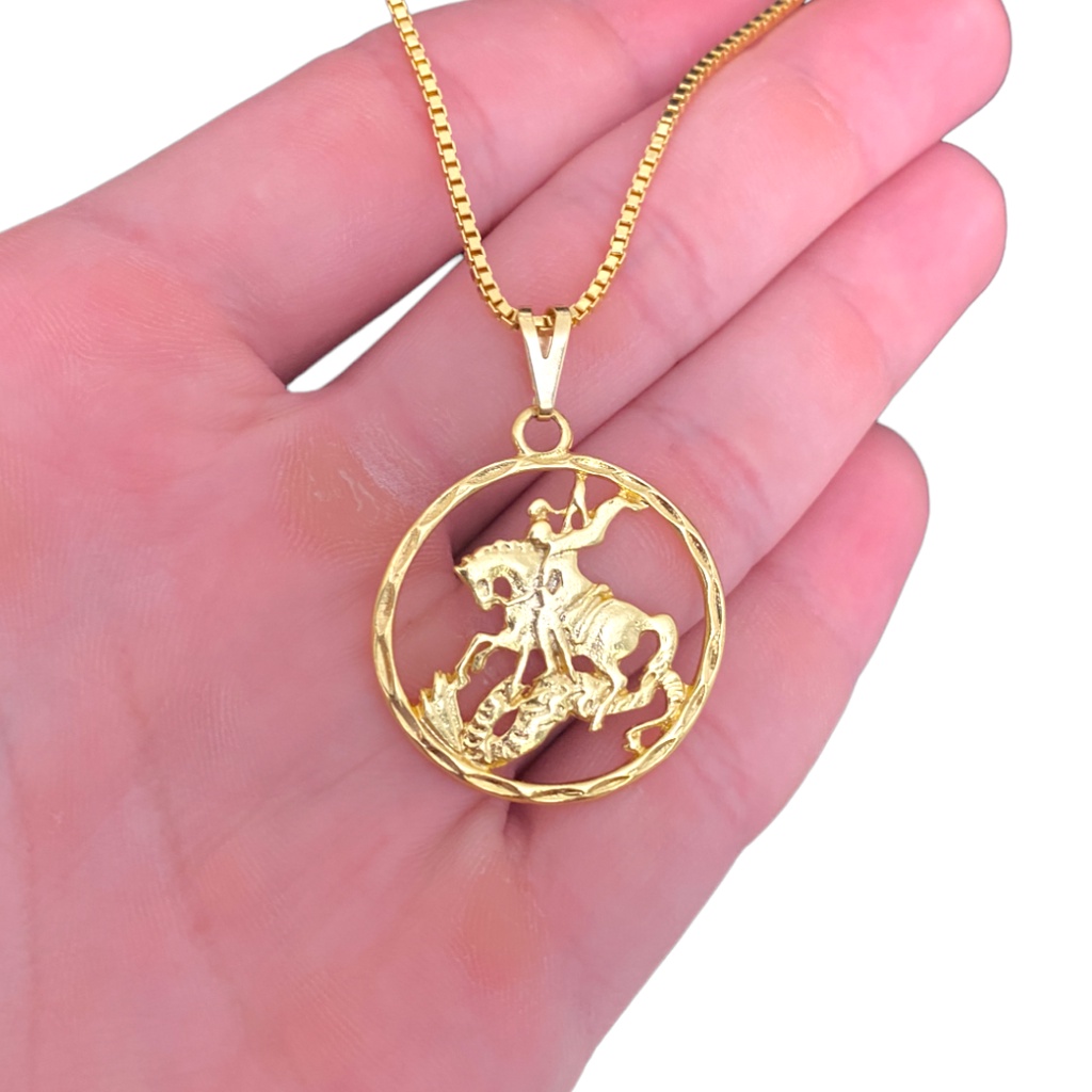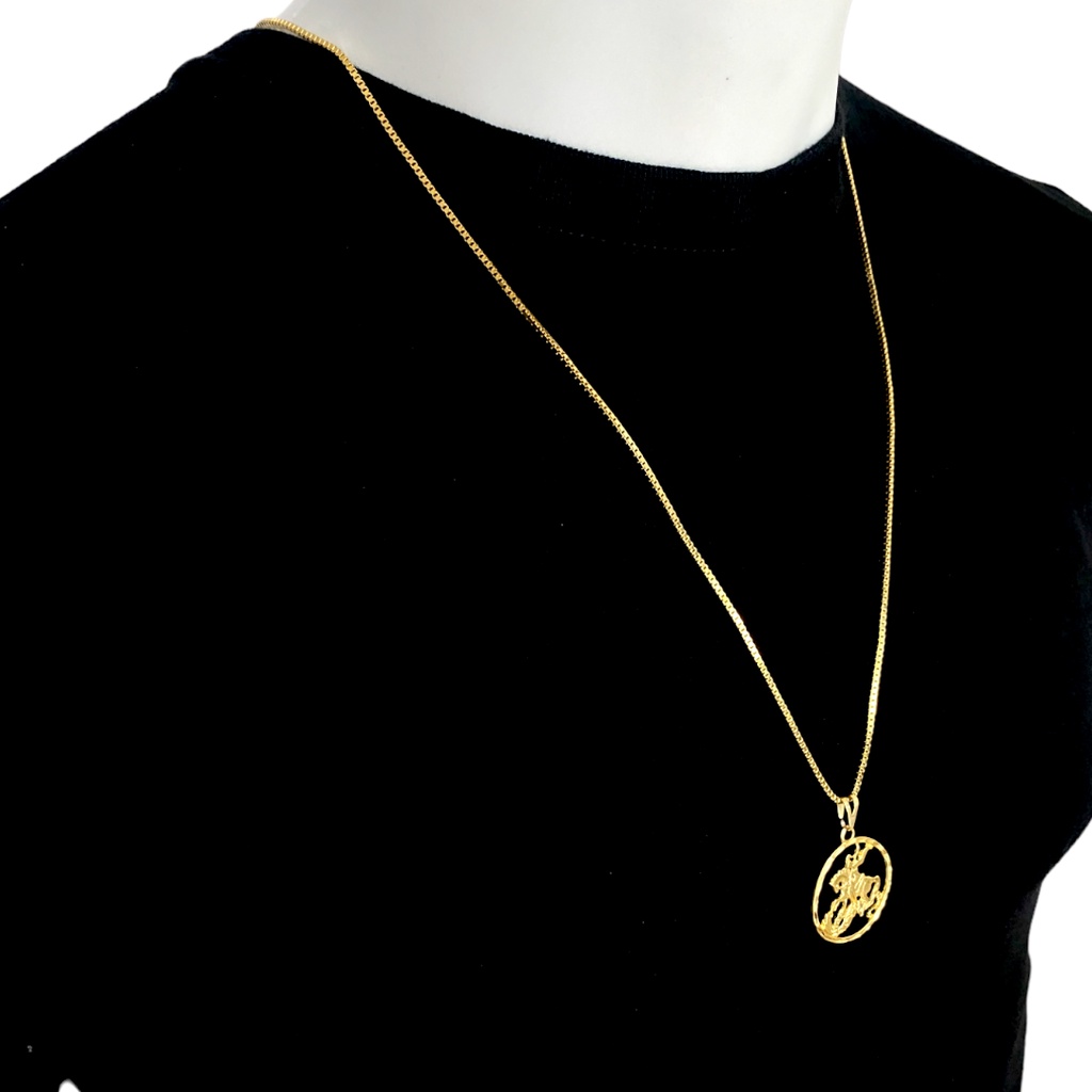 Cordão Veneziana 1,5mm Liga de Moeda Antiga + Banho de Ouro 18k (10 milésimos)+São Jorge Minimalista