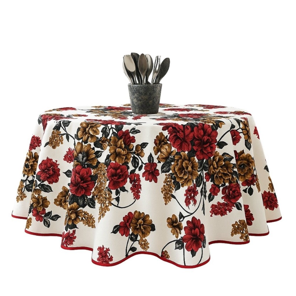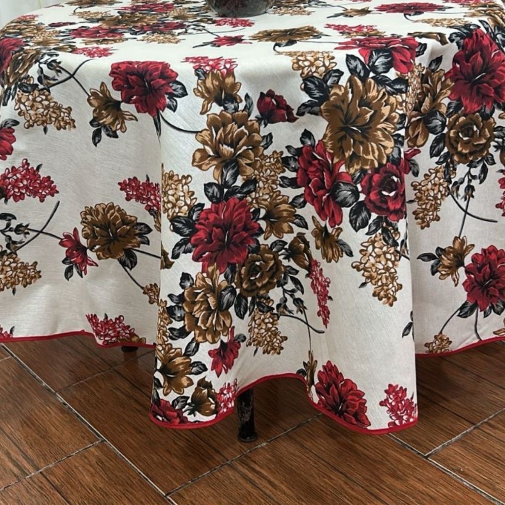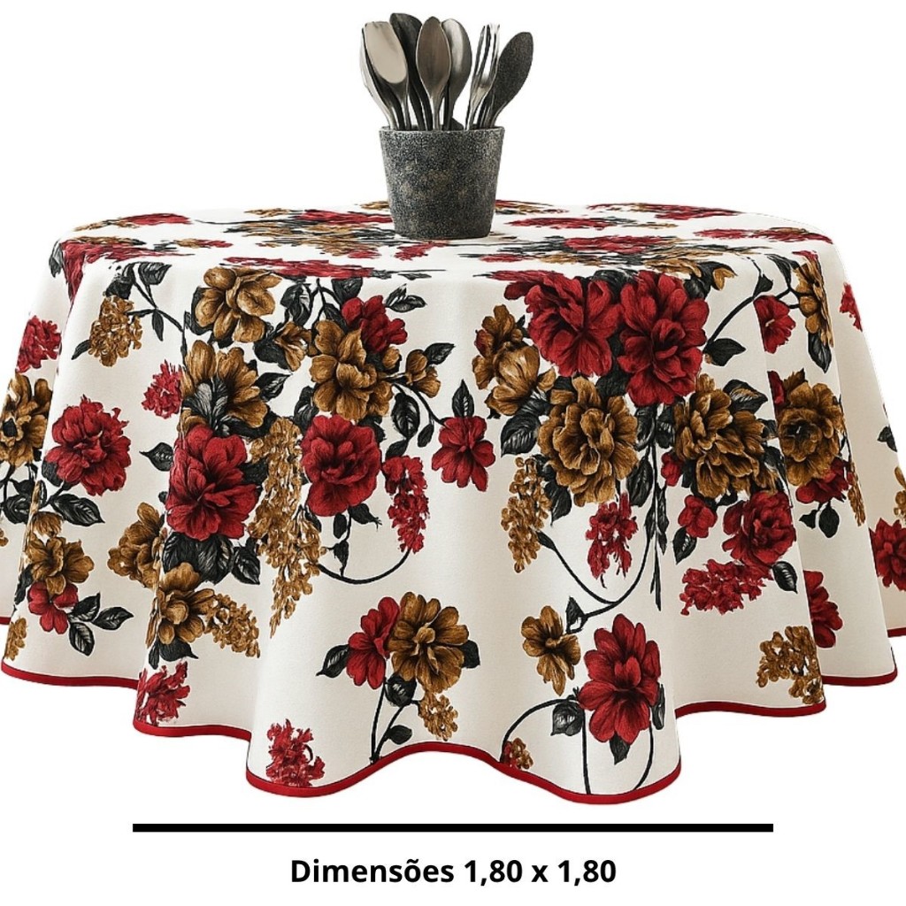 Toalha De Mesa Redonda 1,80m Para 6 Lugares Linho Vermelho
