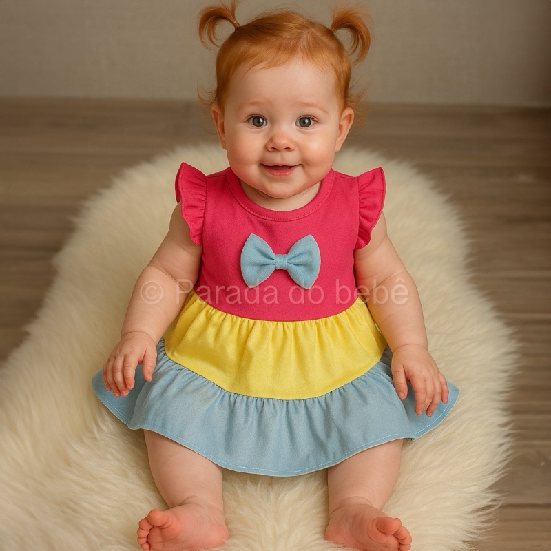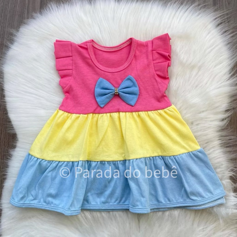 Vestido para bebê Vestido de listras e Lacinho para bebê Presente para bebê