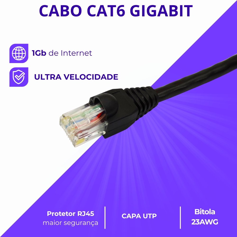 CABO DE REDE CAT6 15 METROS PRETO GIGABIT ULTRA VELOCIDADE